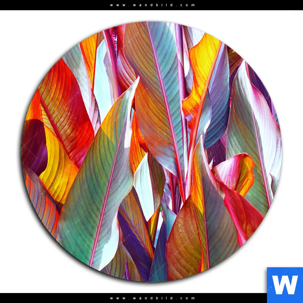 Aluminiumbild gebürstet | Blätter in bunten Farben | Rund