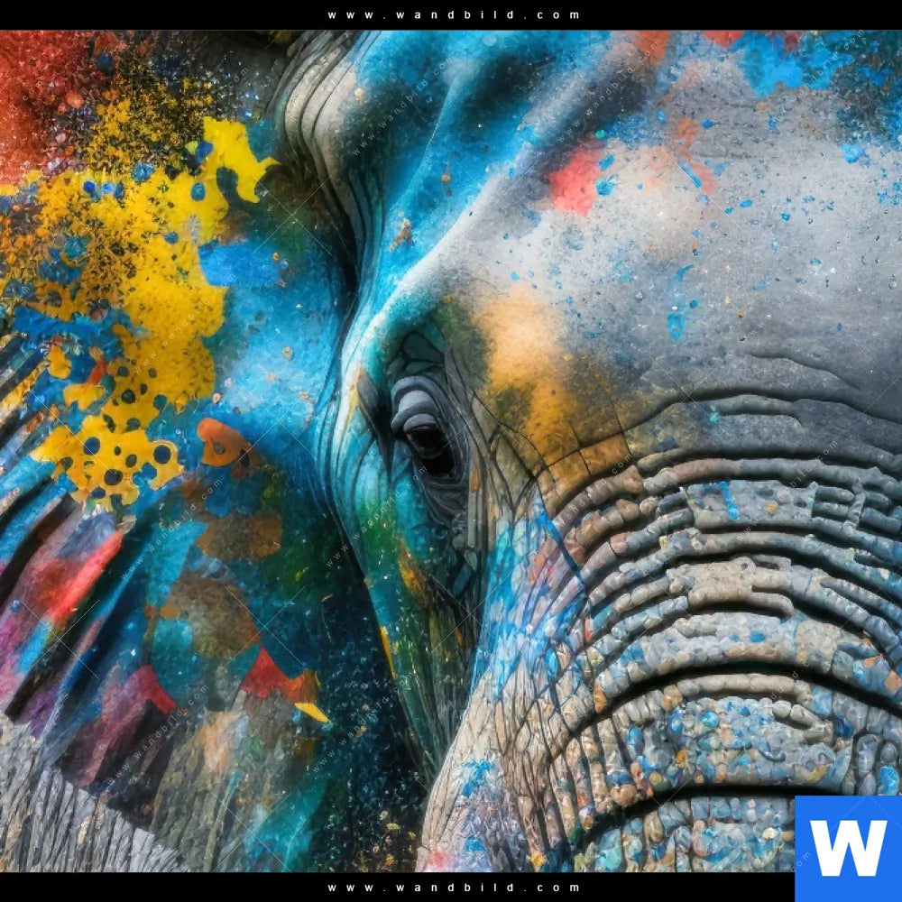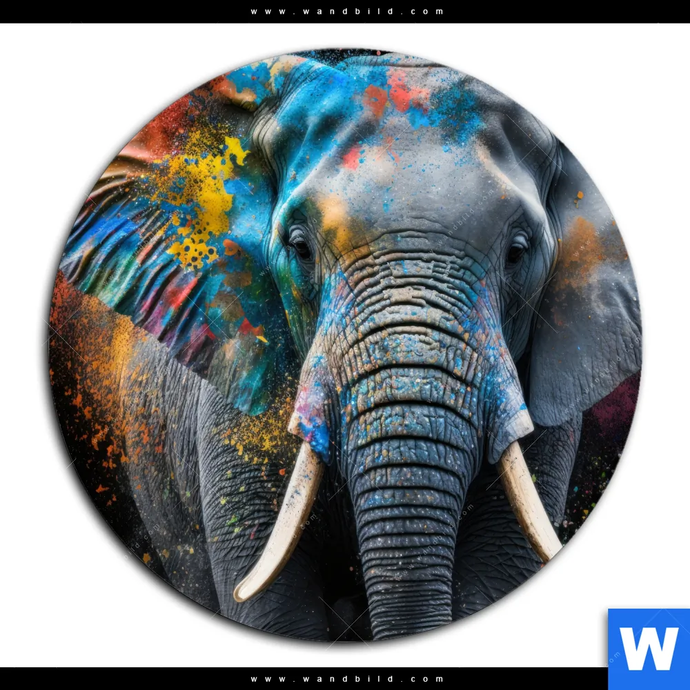 Aluminiumbild gebürstet | Bunter Elefant | Rund