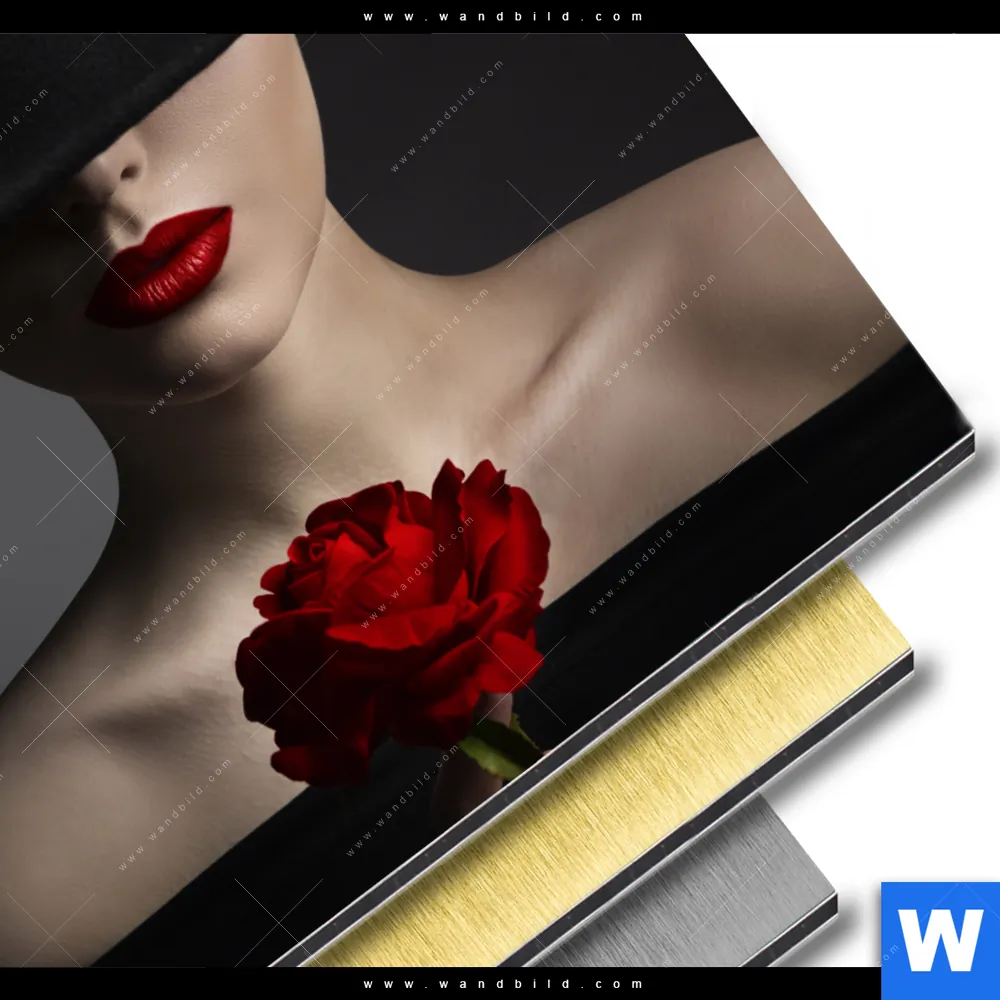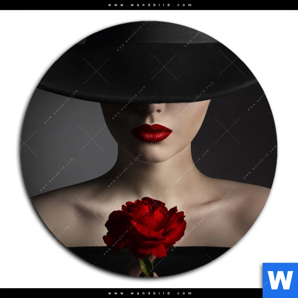 Aluminiumbild gebürstet | Frau mit Hut & Rose | Rund