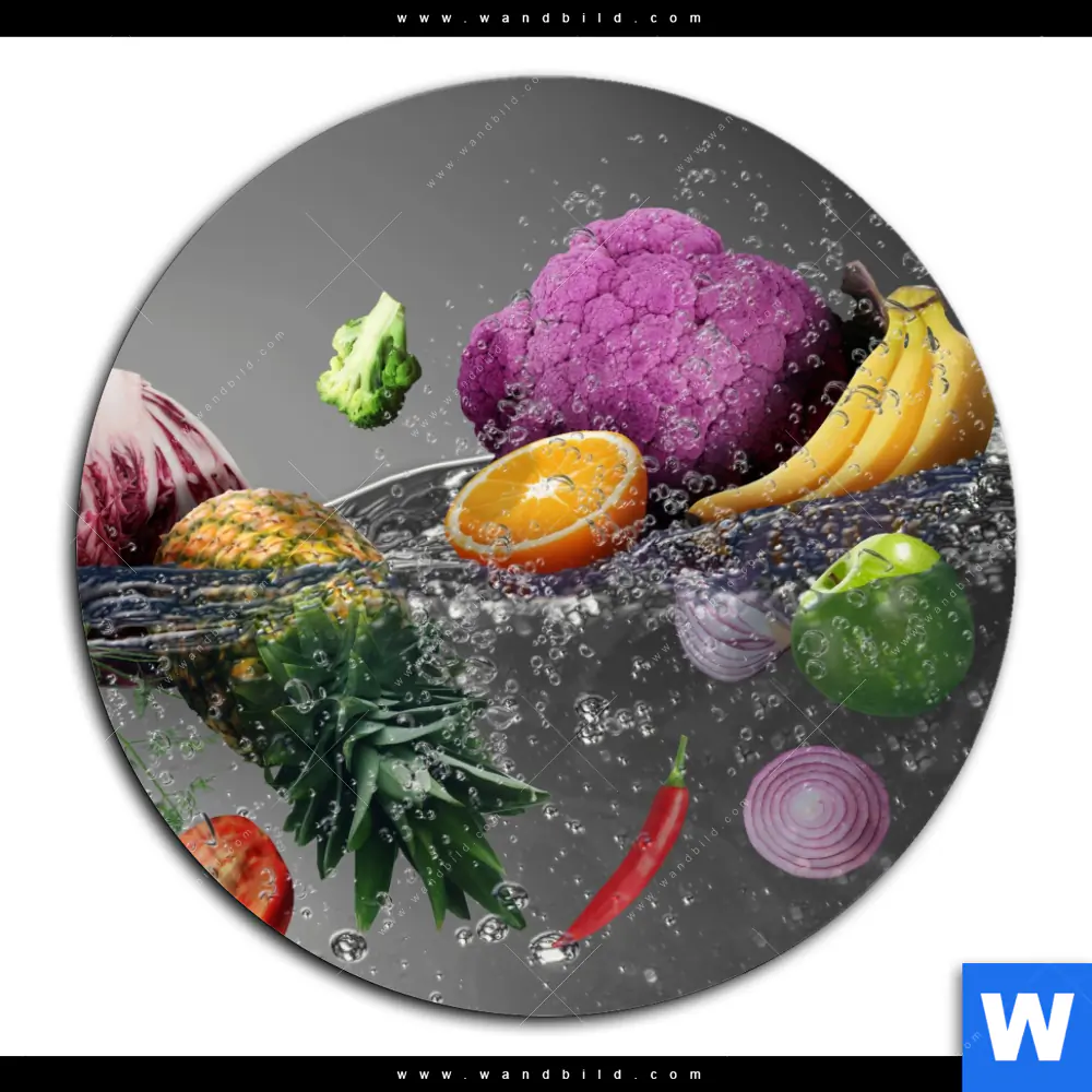 Aluminiumbild gebürstet | Frische Gemüse-Explosion | Rund