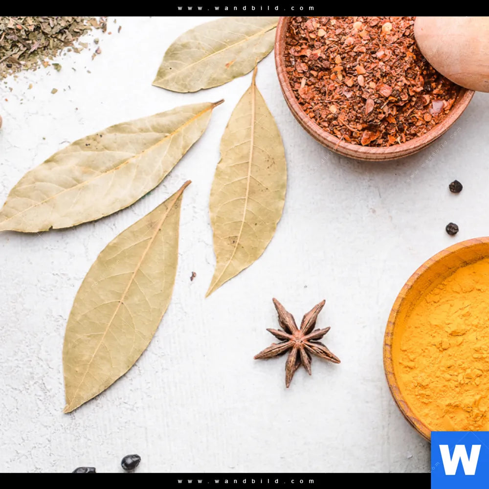 Aluminiumbild gebürstet | Gewürze auf hellem Untergrund | Panorama
