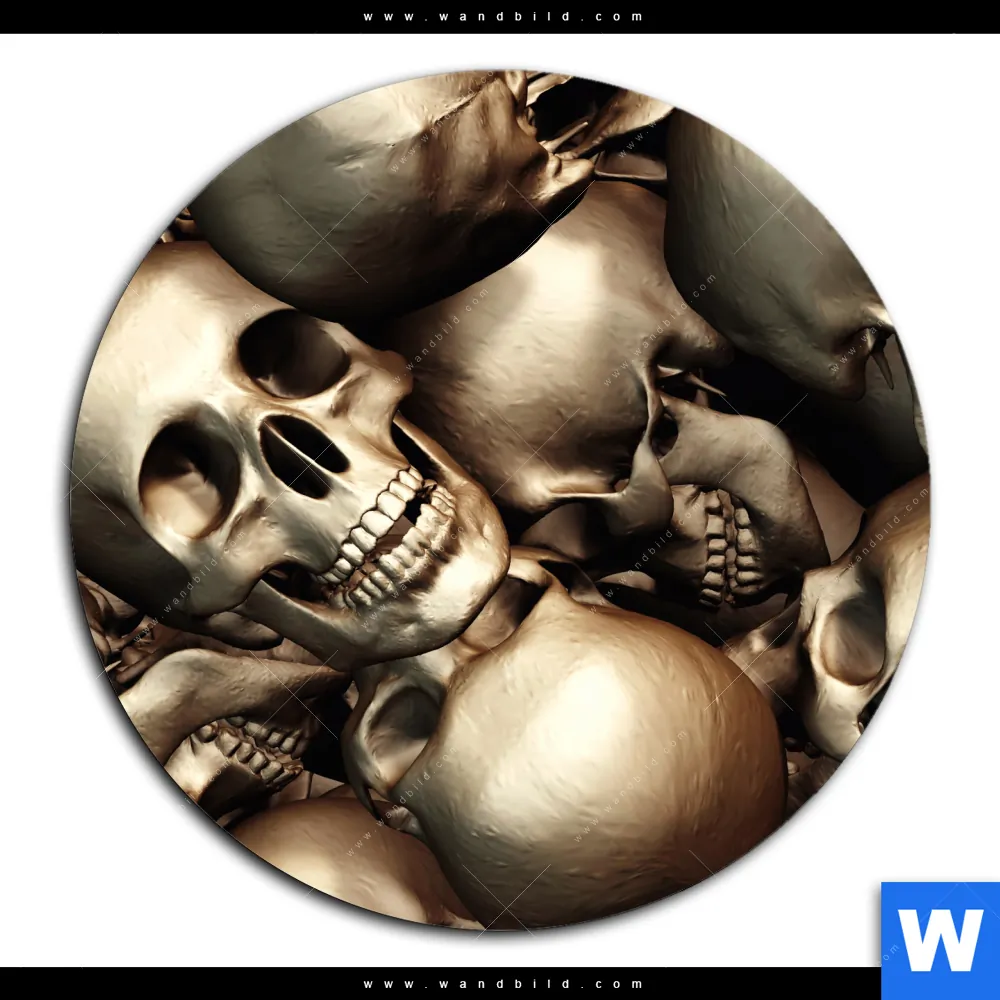 Aluminiumbild gebürstet | Goldene Schädel | Rund