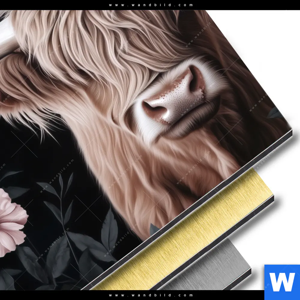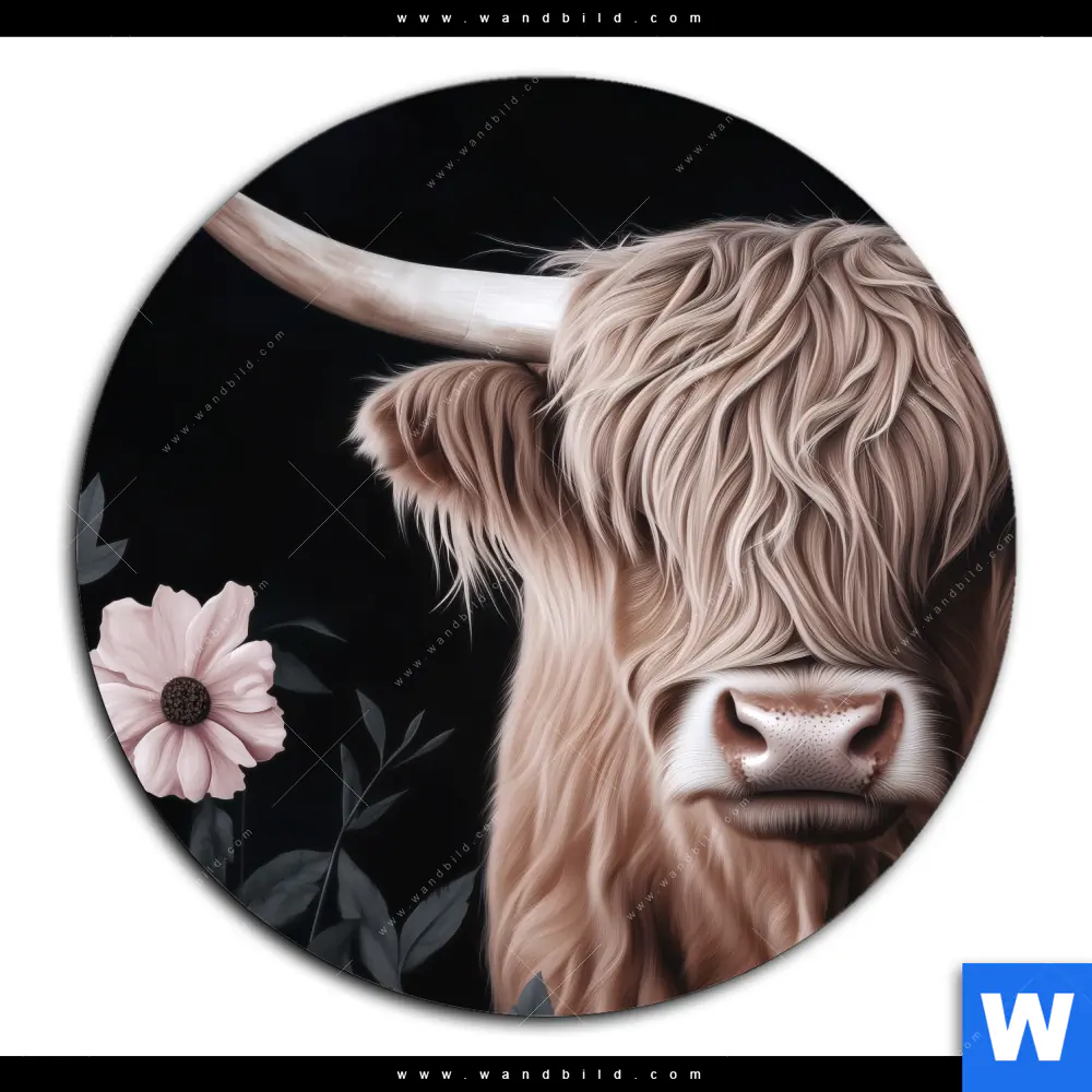 Aluminiumbild gebürstet | Hochlandrind - Wilde Schönheit | Rund