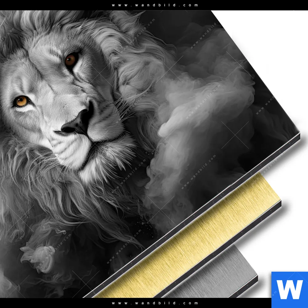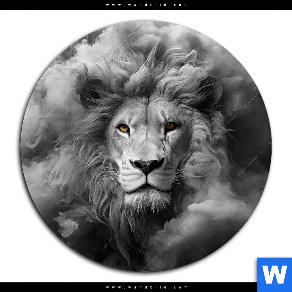Aluminiumbild gebürstet | Löwengesicht in Rauch | Rund