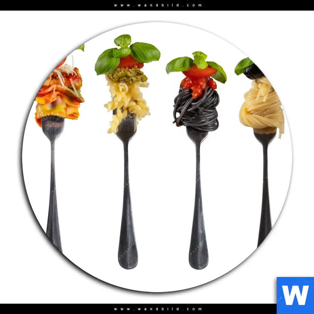 Aluminiumbild gebürstet | Pasta auf Gabeln | Rund