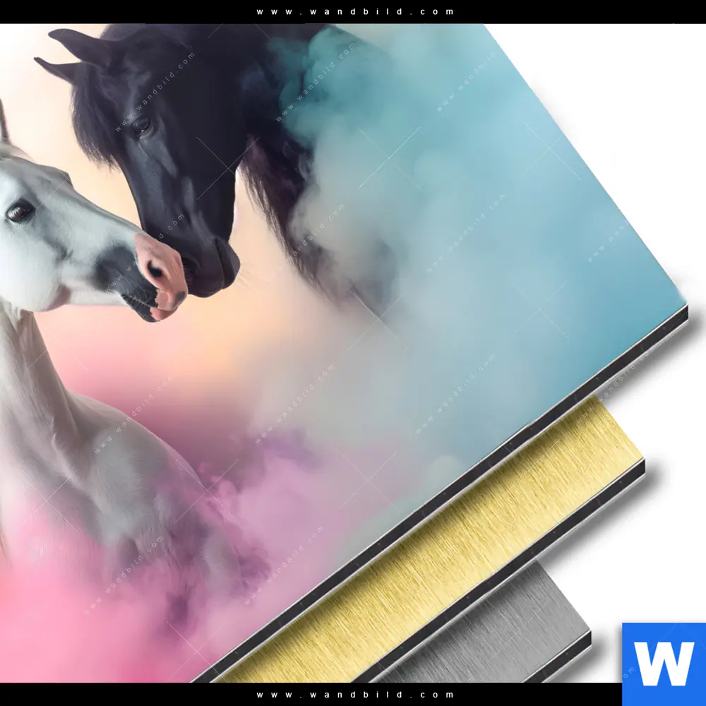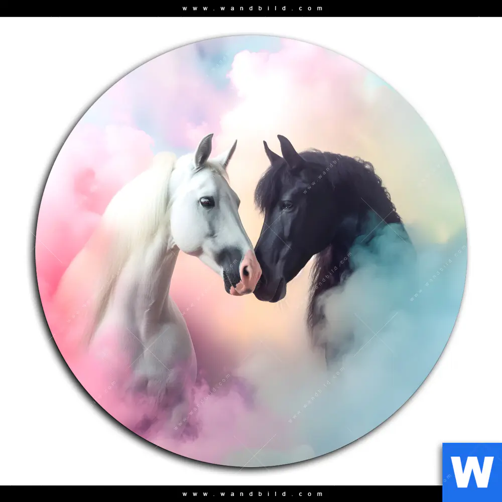 Aluminiumbild gebürstet | Pferdeliebe in Pastellfarben | Rund