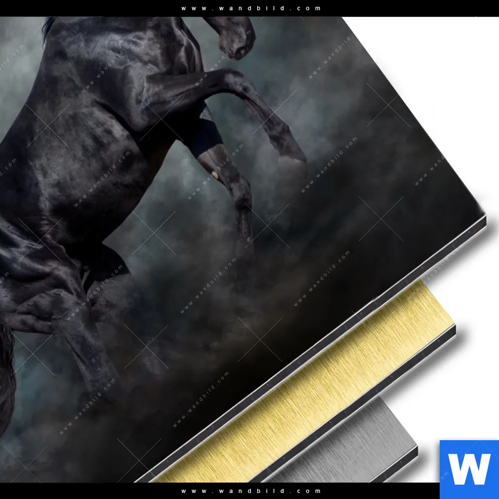 Aluminiumbild gebürstet | Schwarzer Hengst | Rund