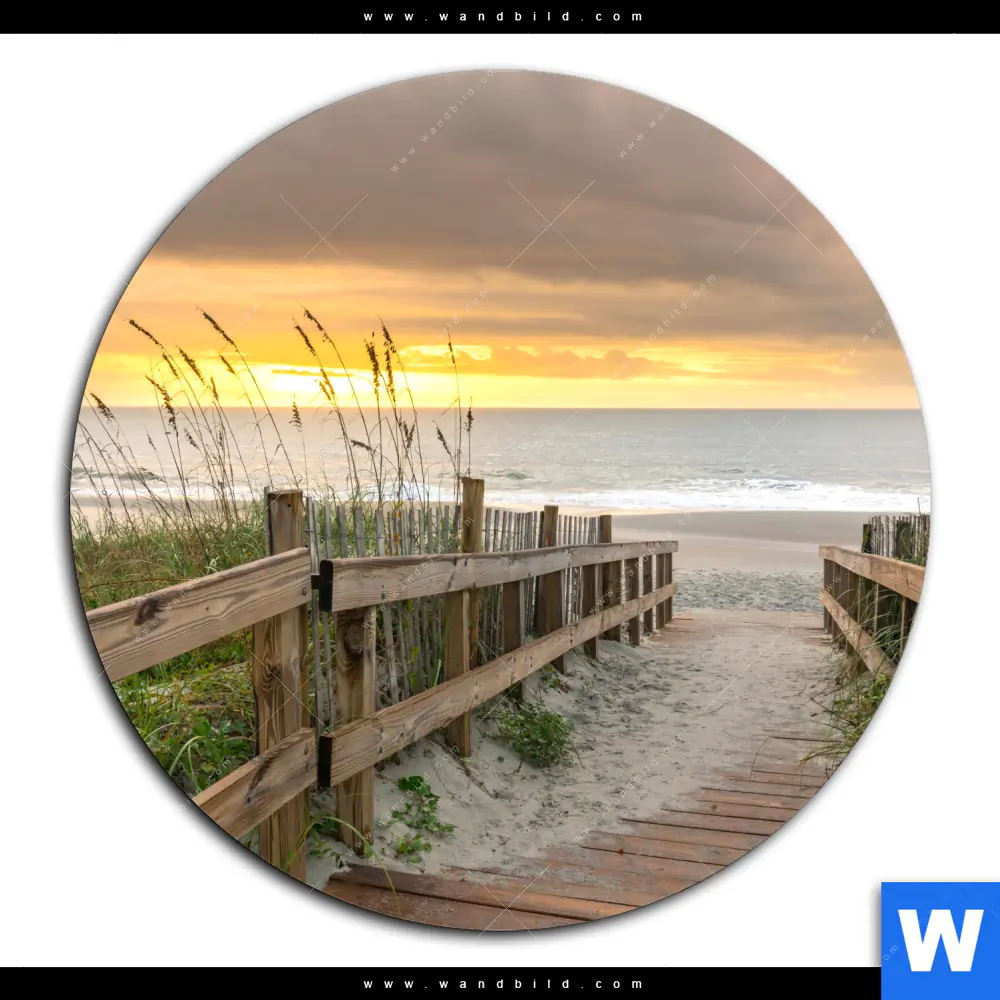 Aluminiumbild gebürstet | Sonnenuntergang am Strandweg | Rund