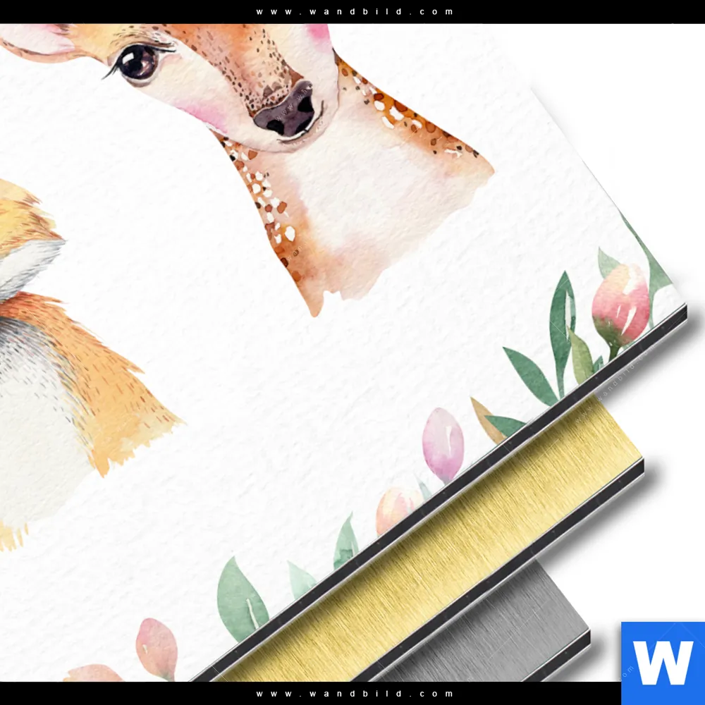 Aluminiumbild gebürstet | Tiere des Waldes | Rund