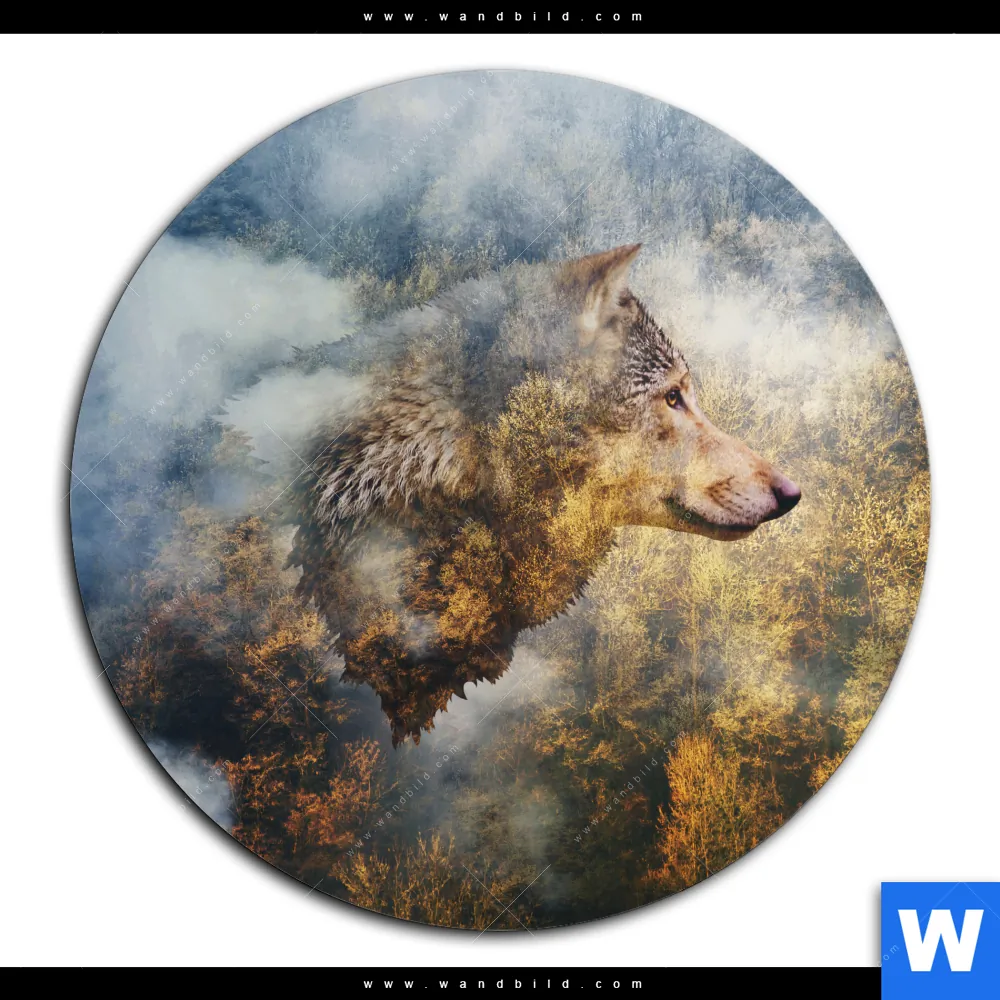 Aluminiumbild gebürstet | Wolf & Wald No.2 | Rund