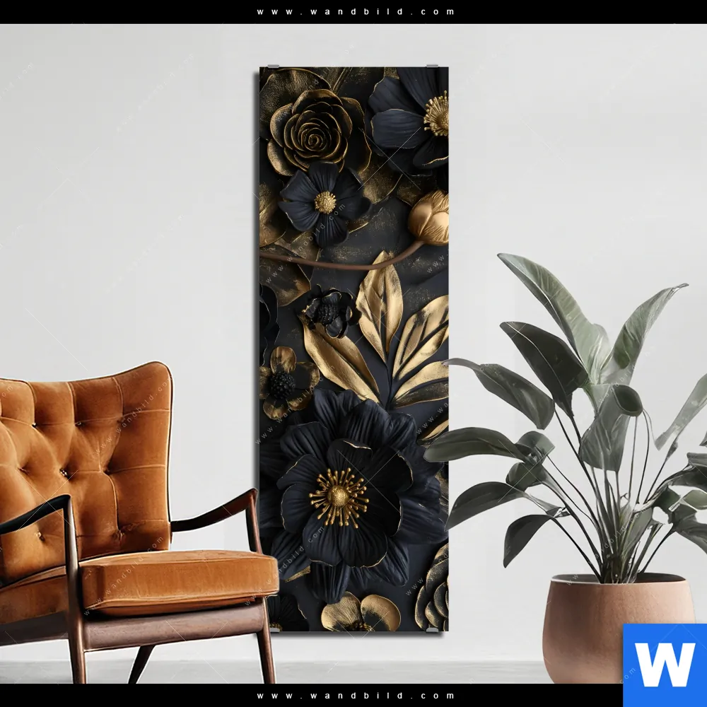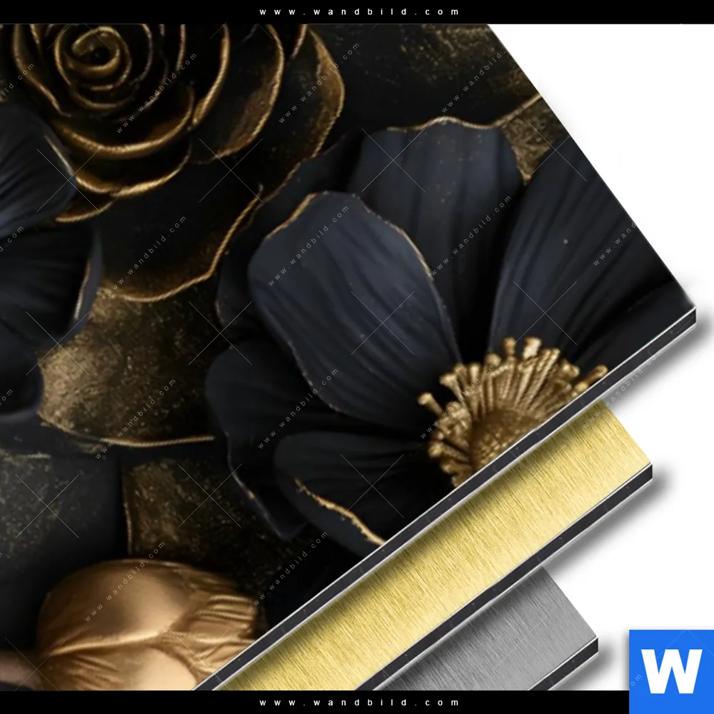 Alu-Dibond Bild | Schwarze und goldene Blüten | Schmal