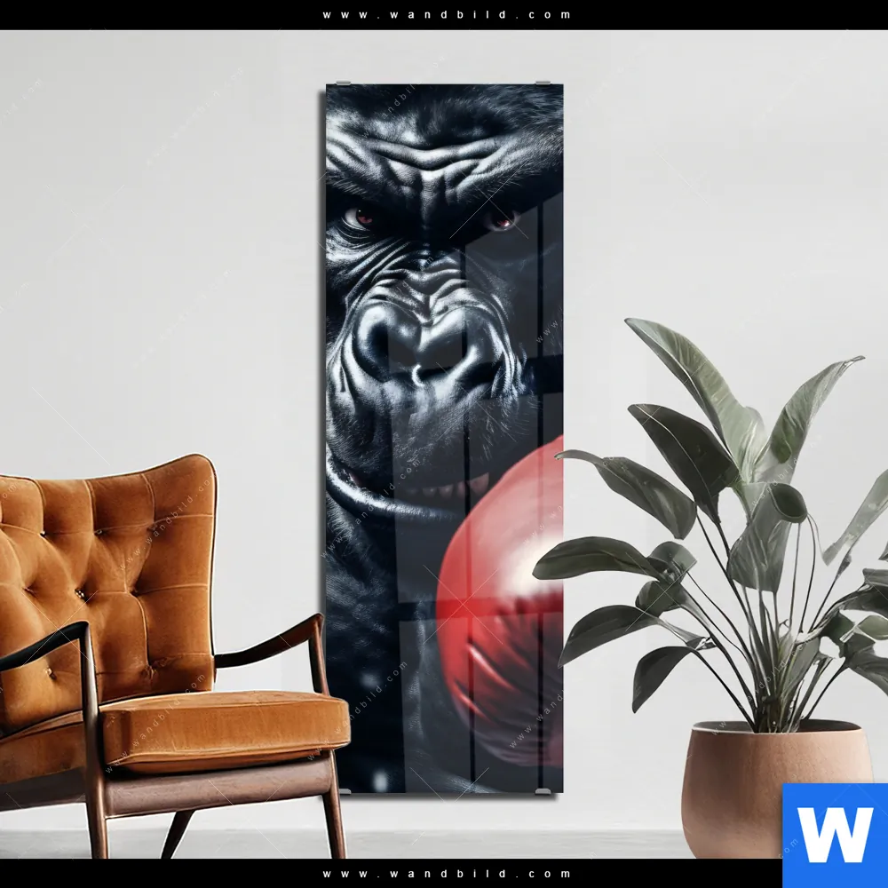 Acrylglasbild | Gorilla mit roten Boxhandschuhen | Schmal