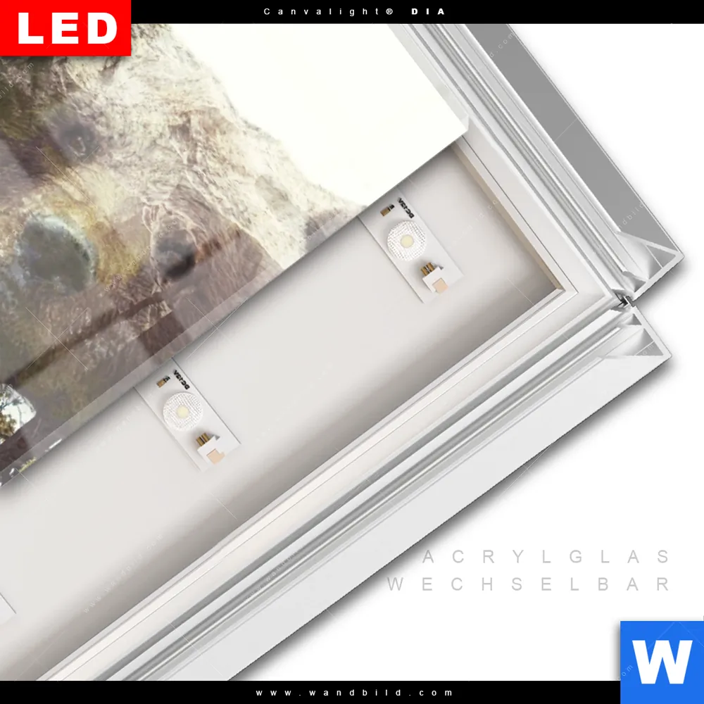LED-Glasbild mit austauschbarem Acrylglas-Druck (Wechselbild)