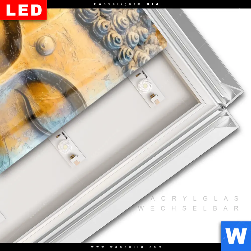 LED-Glasbild mit austauschbarem Acrylglas-Druck (Wechselbild)
