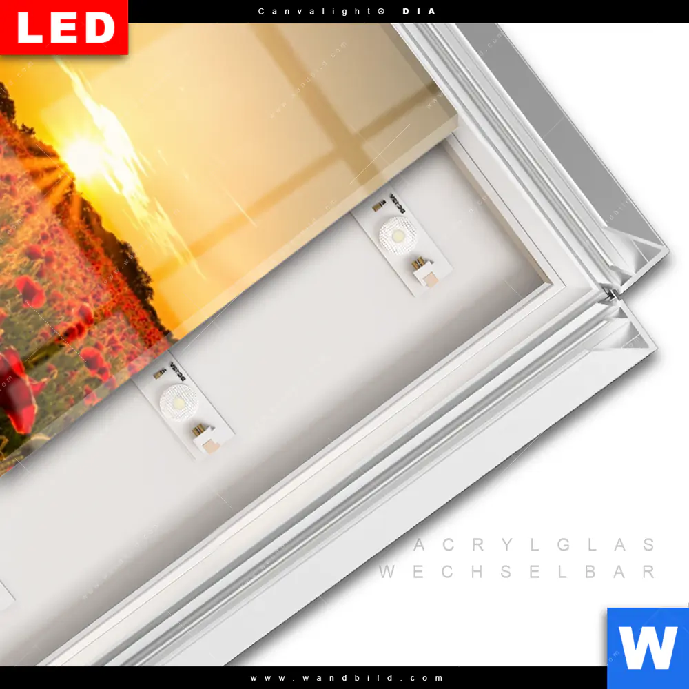 LED-Glasbild mit austauschbarem Acrylglas-Druck (Wechselbild)