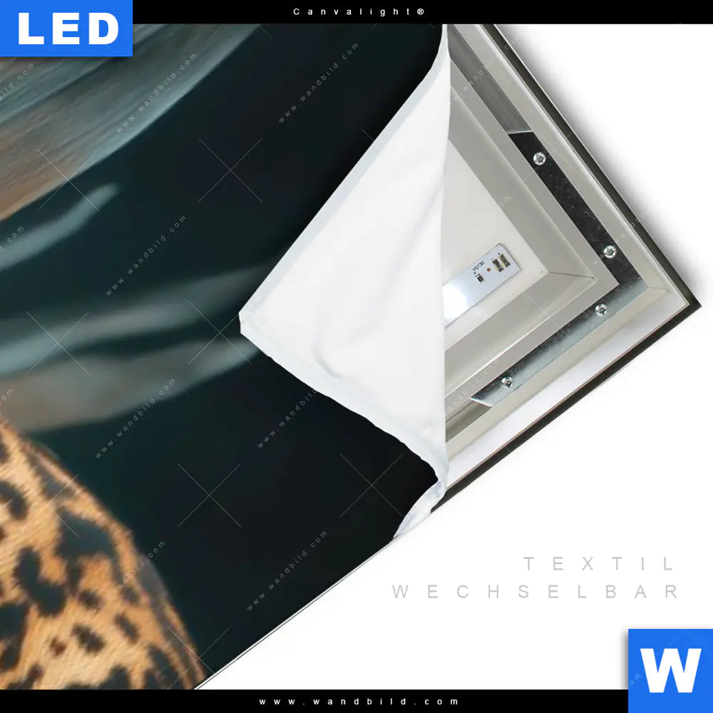 Canvalight® TEX Leuchtbild | Leopard zwischen Blättern | Schmal