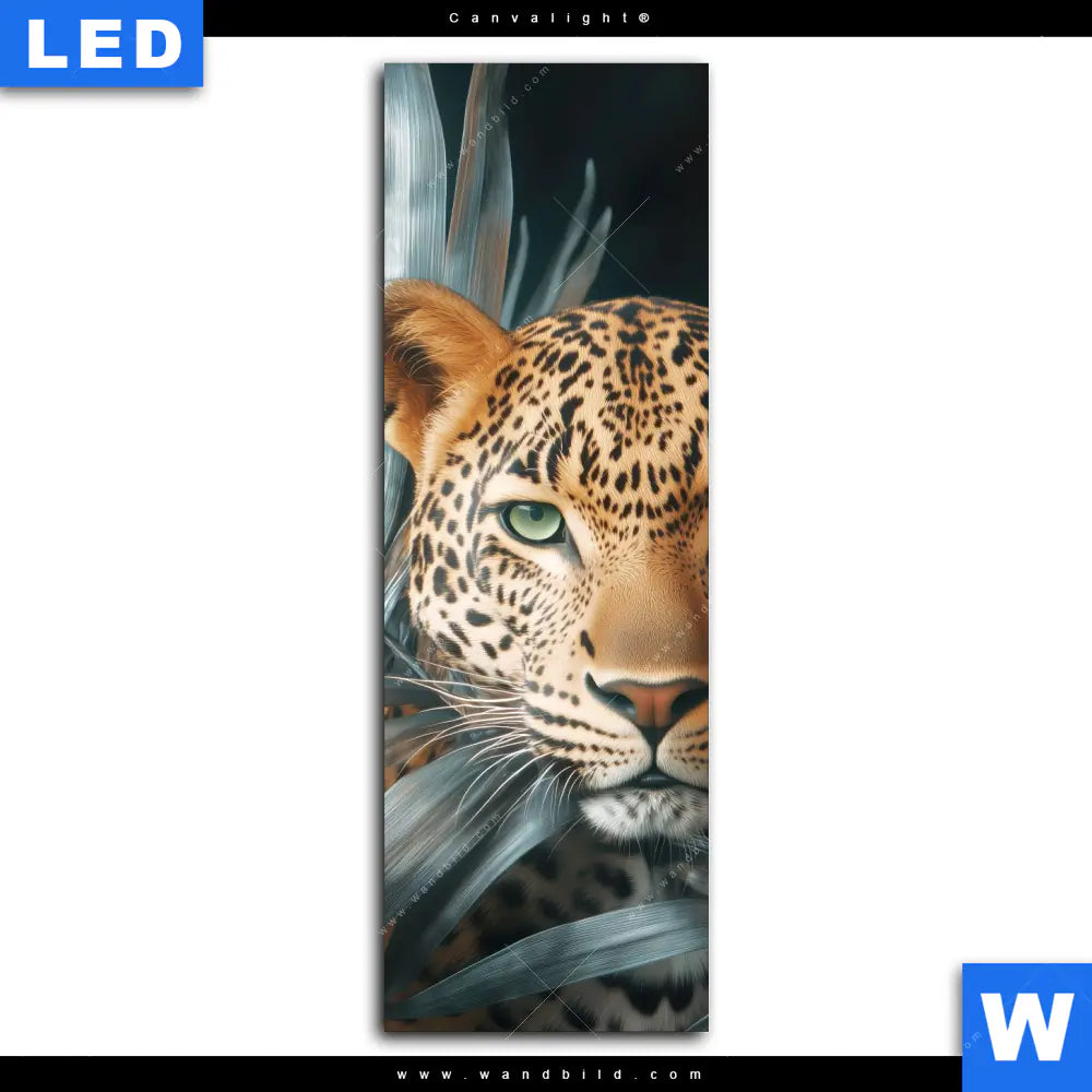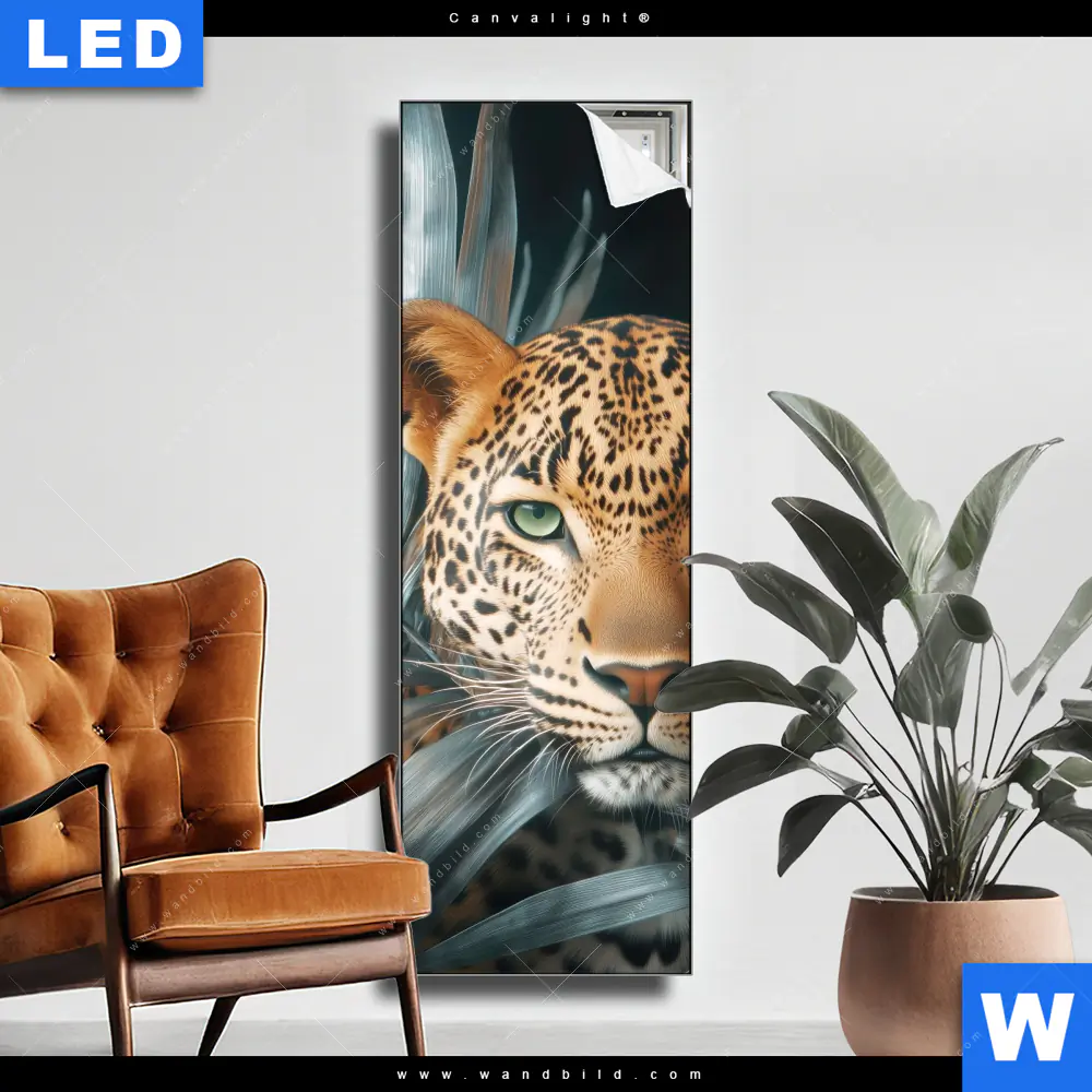 Canvalight® Leuchtbild | Leopard zwischen Blättern | Schmal