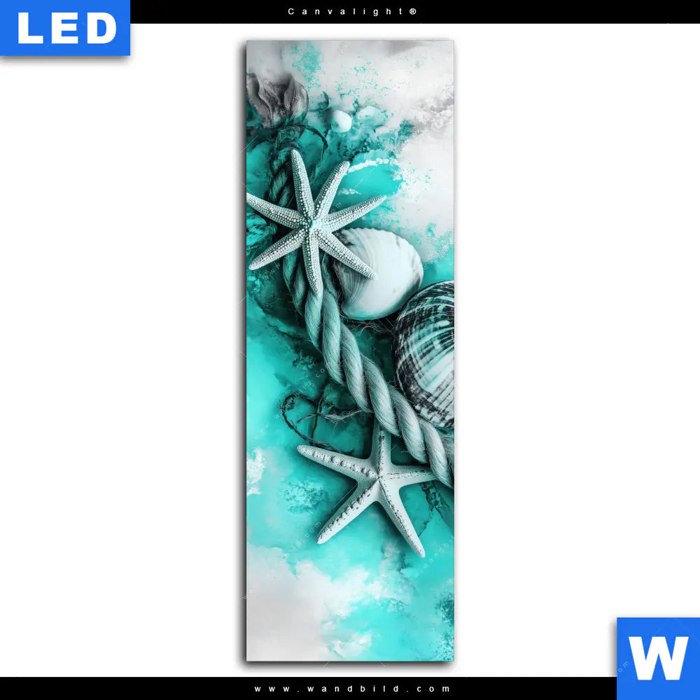 Canvalight® Leuchtbild | Muscheln-Meereszauber in Türkis | Schmal