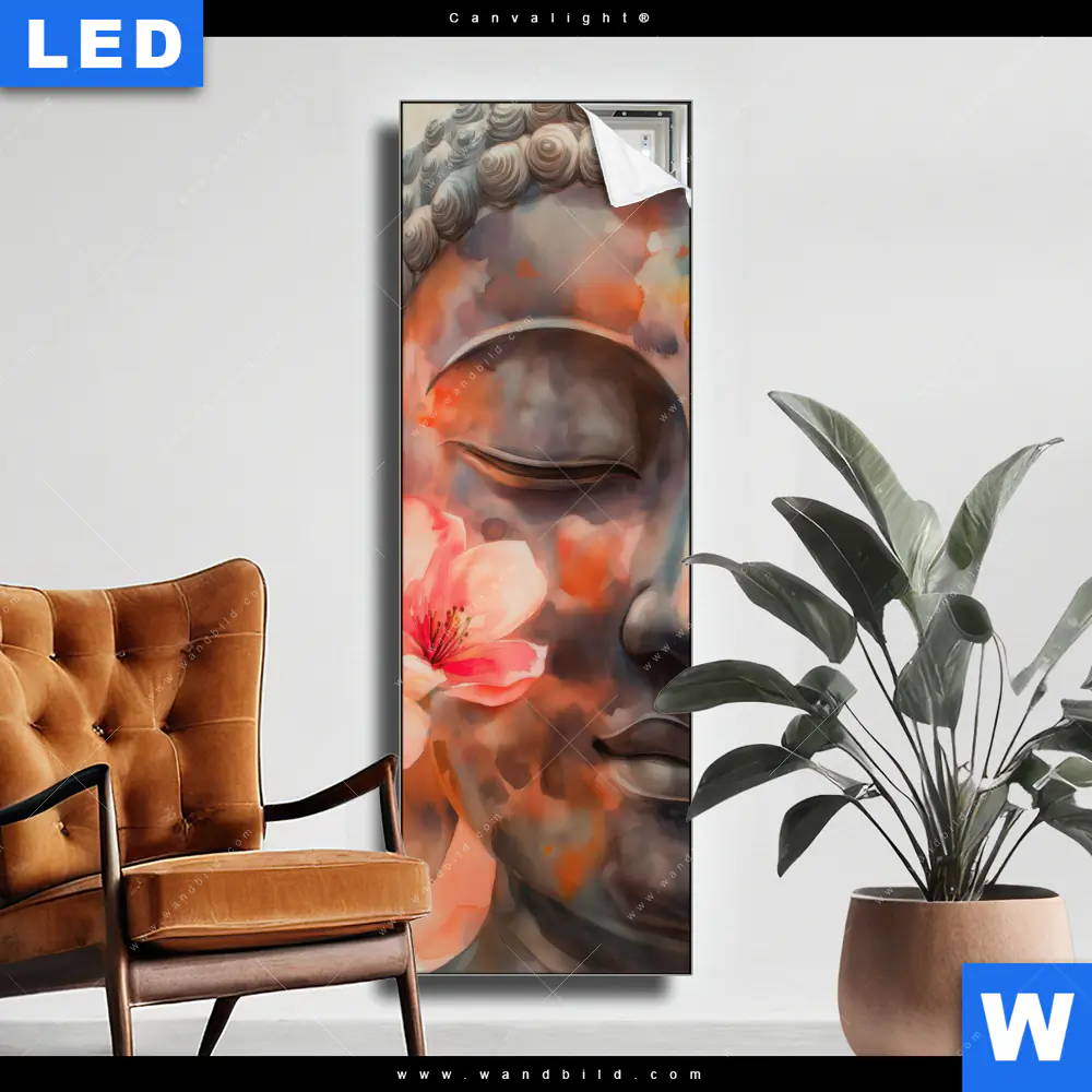 Canvalight® Leuchtbild | Meditativer Buddha in Blumen | Schmal
