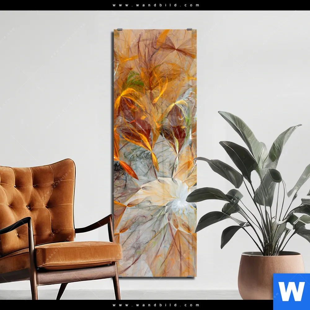Acrylglasbild | Abstrakter Blütenzauber in orange | Schmal