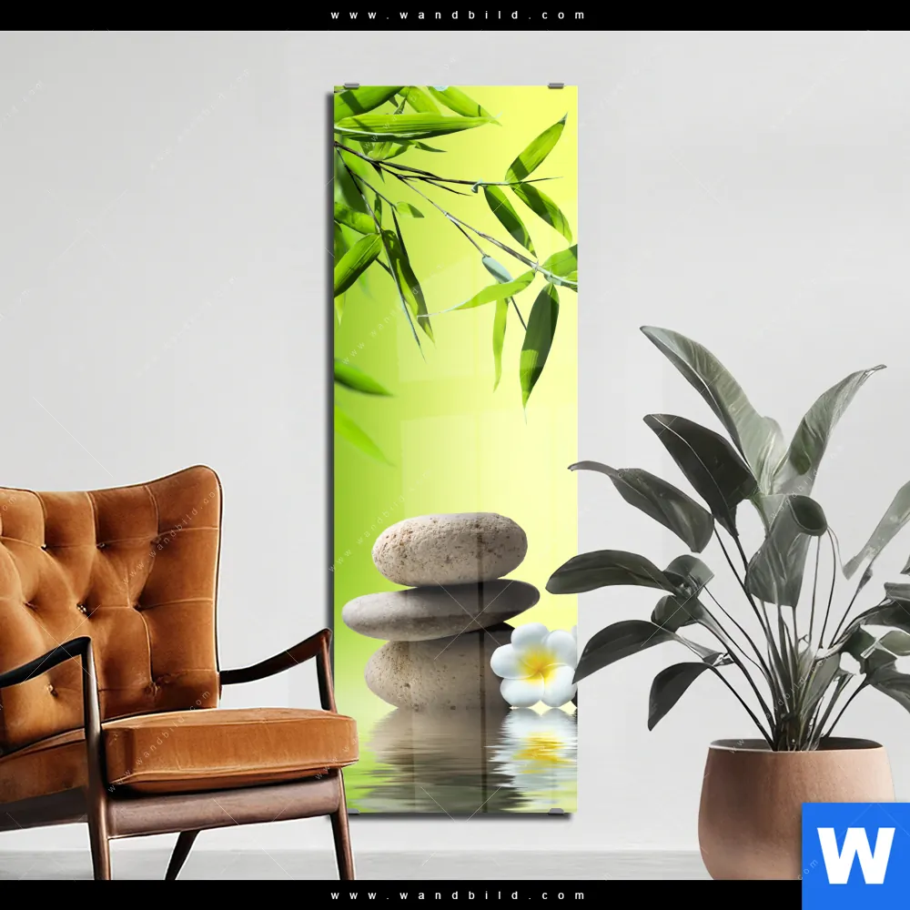 Buddha - Feng Shui, Blumen - Botanik Glasbild inkl. vormontiertem Rückrahmen