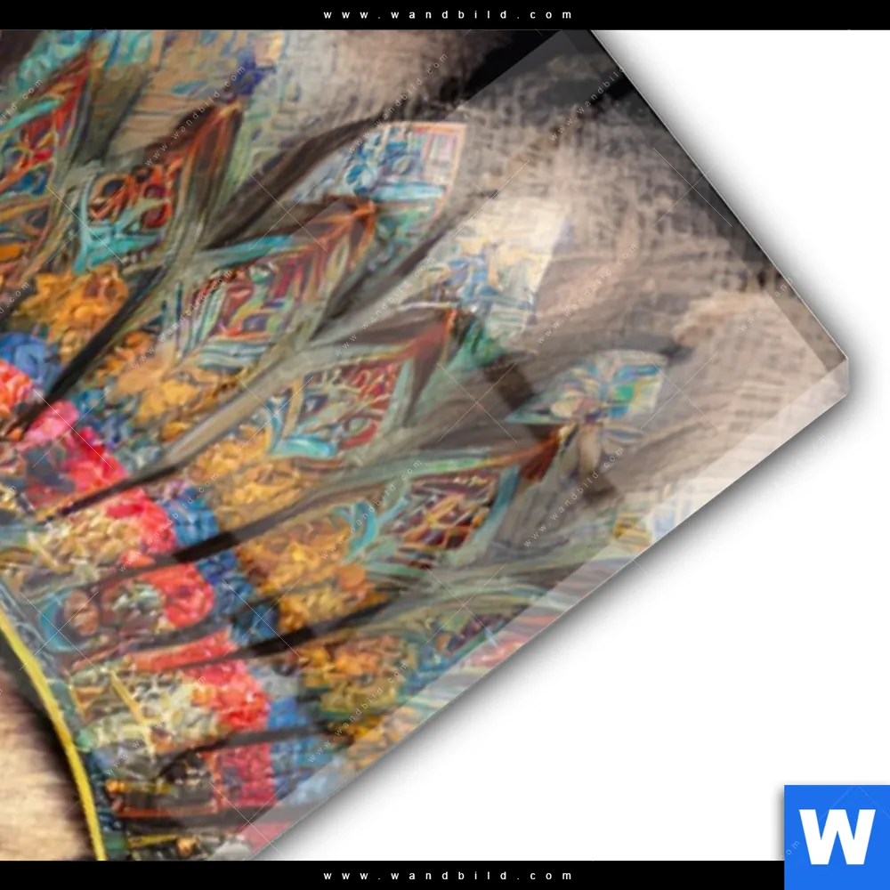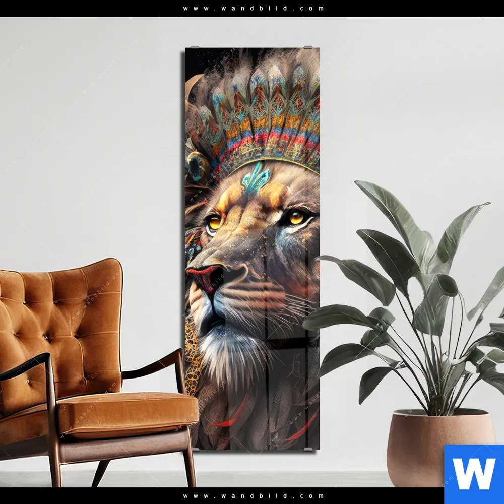 Acrylglasbild | Löwenkopf mit bunten Federn | Schmal