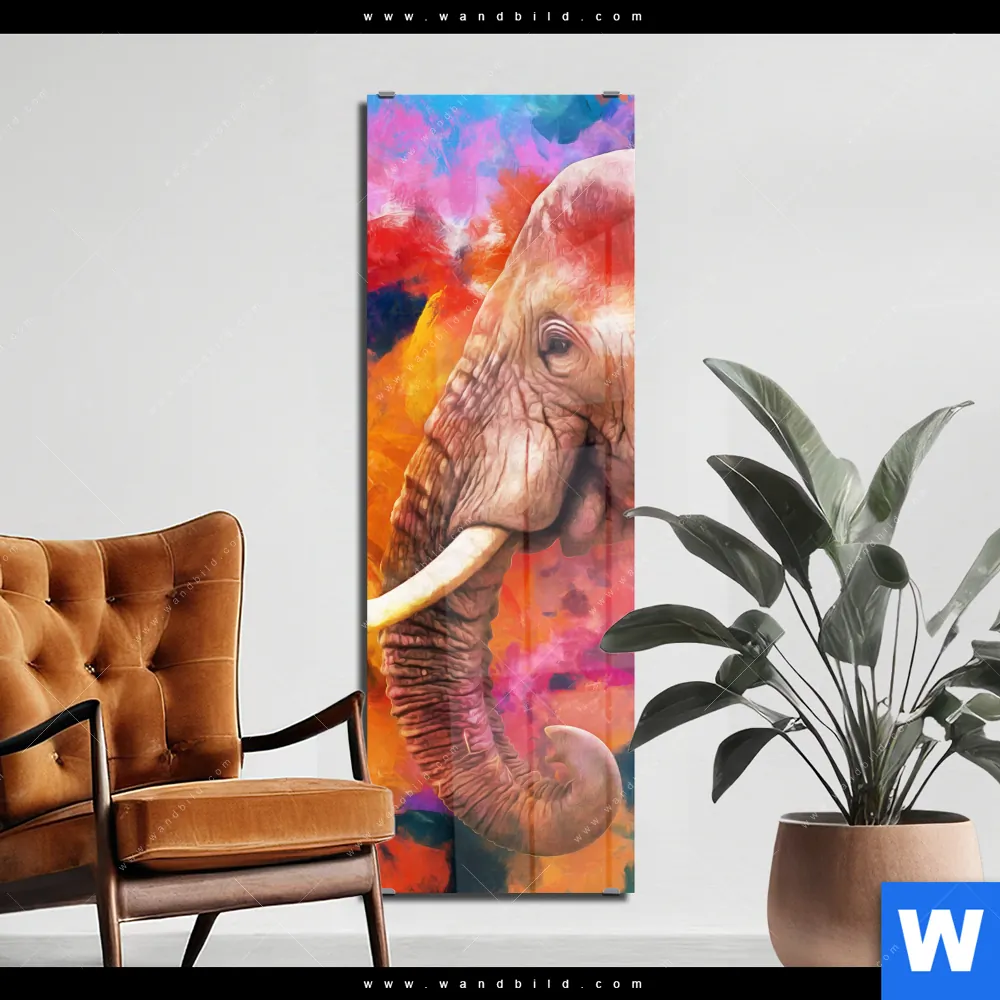 Acrylglasbild | Moderner Bunter Elefant | Schmal