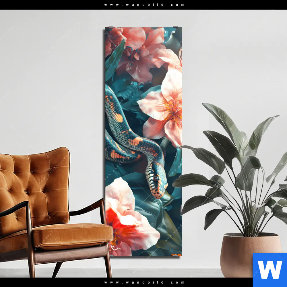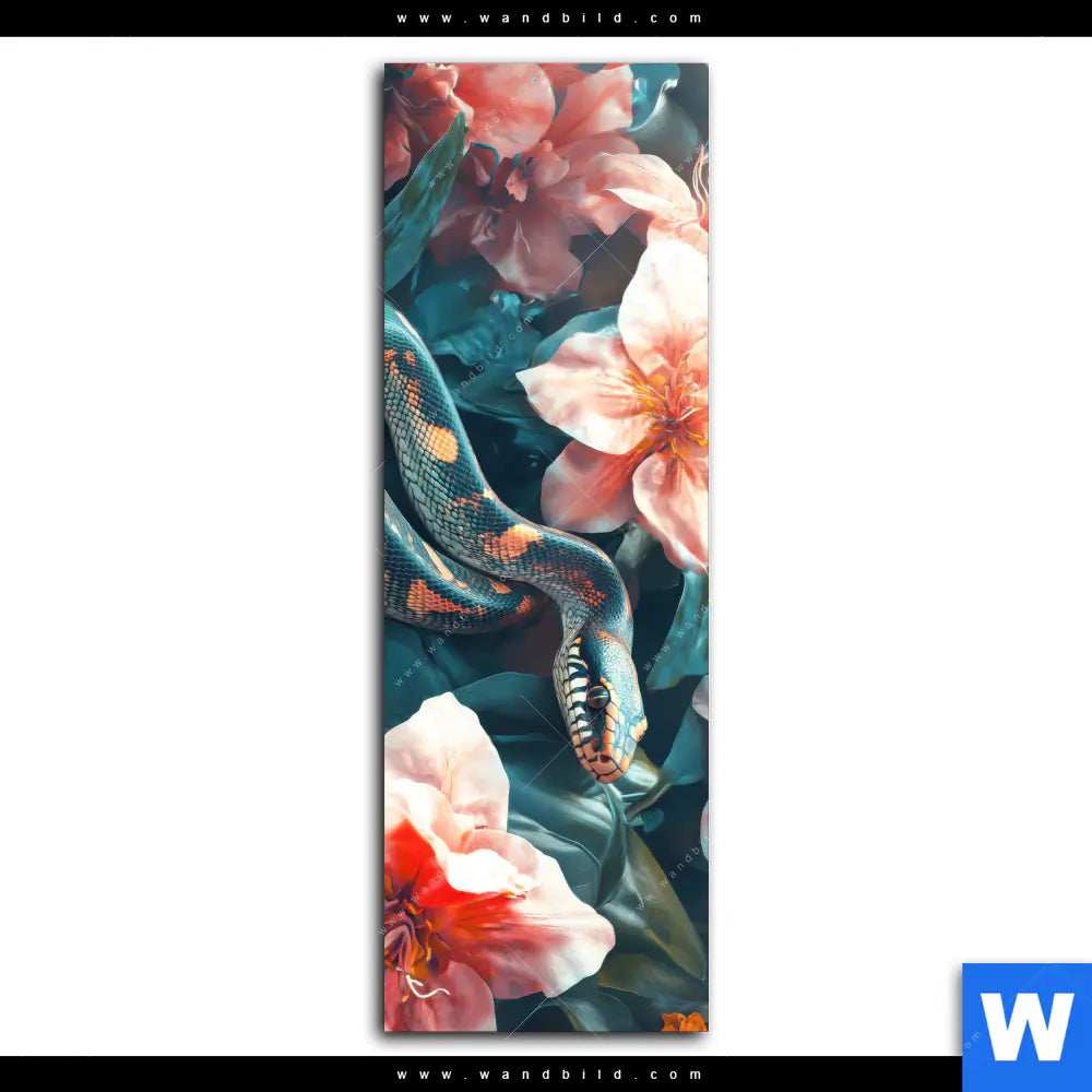 Alu-Dibond Bild | Schlange zwischen großen Blüten | Schmal