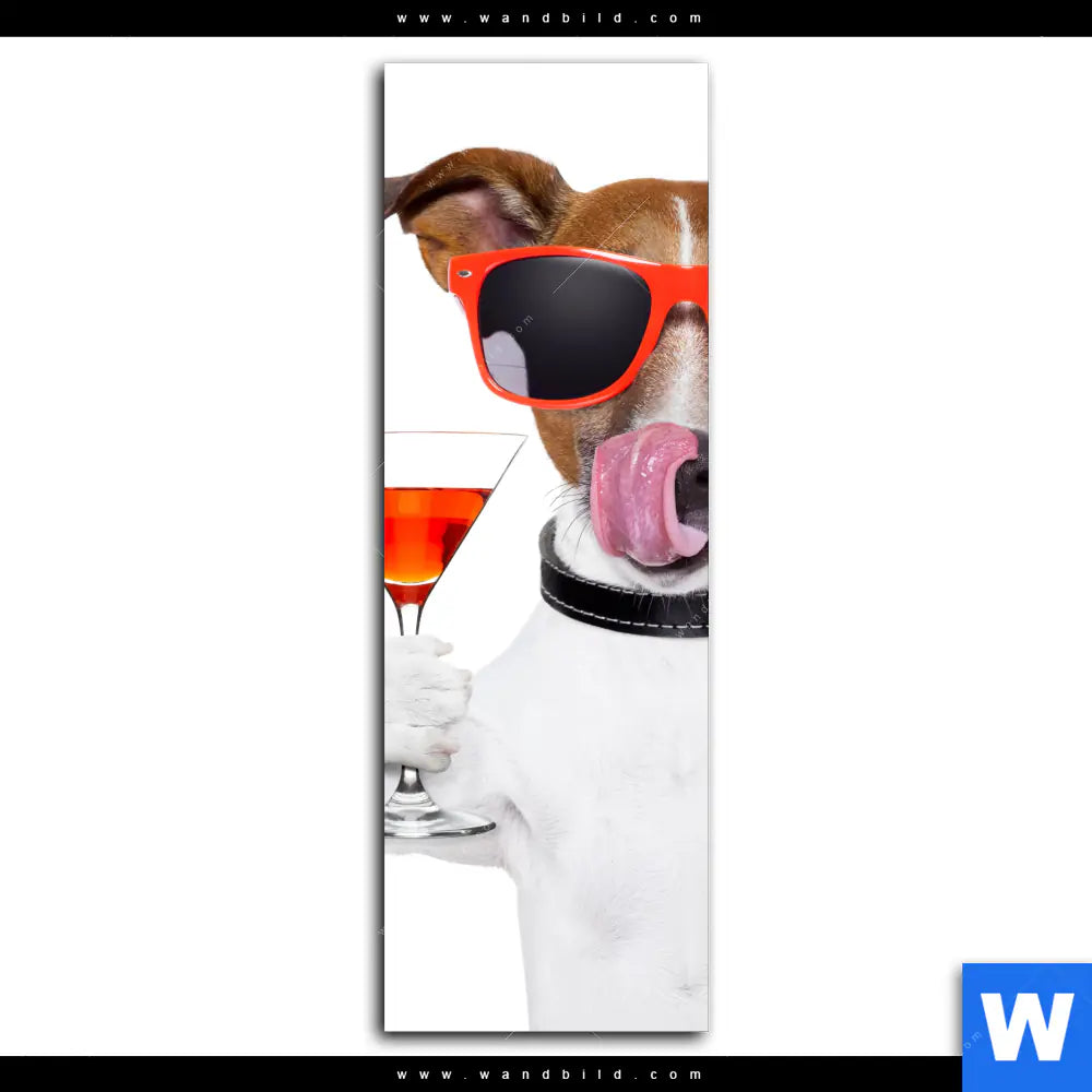 Aluminiumbild gebürstet | Lustiger Hund mit Drink | Schmal