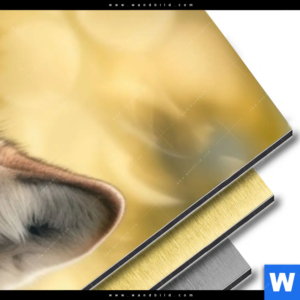 Aluminiumbild gebürstet | Wolfsblick im Frühling | Schmal