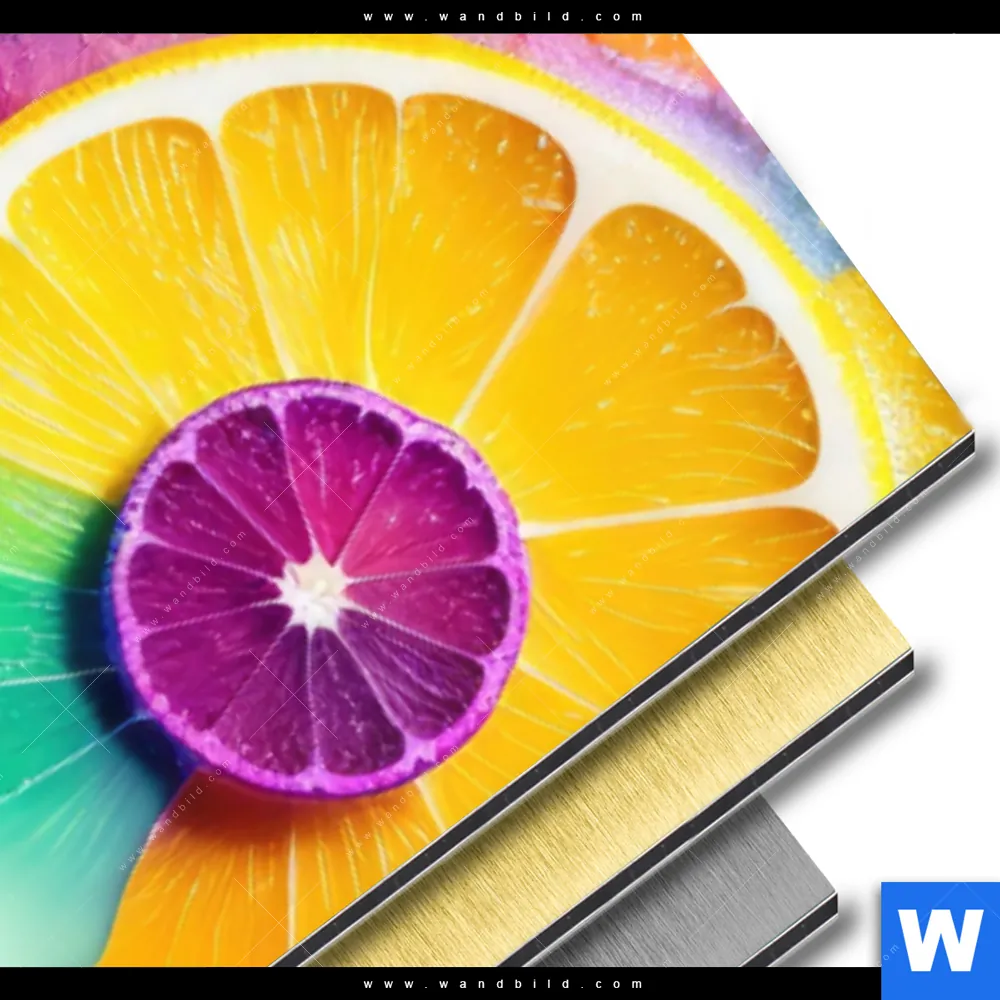 Aluminiumbild gebürstet | Zitronen Neon Farbe | Schmal