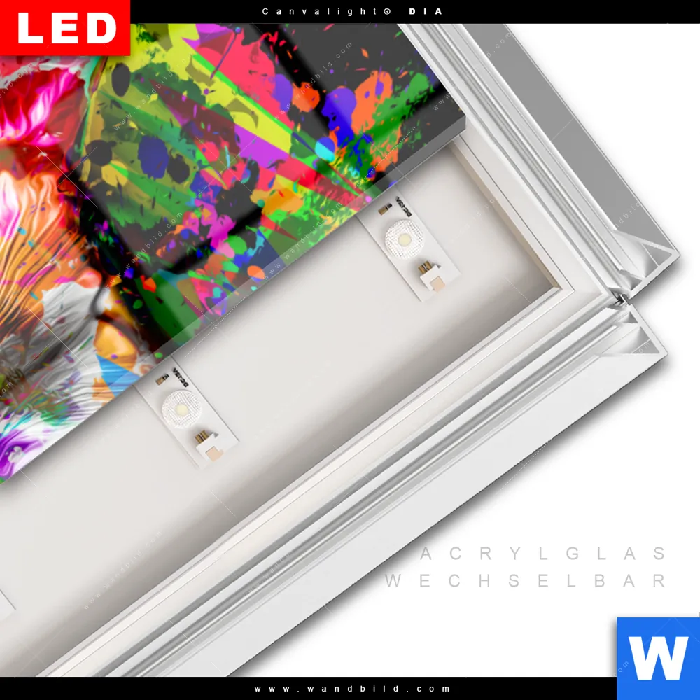 LED-Glasbild mit austauschbarem Acrylglas-Druck (Wechselbild)