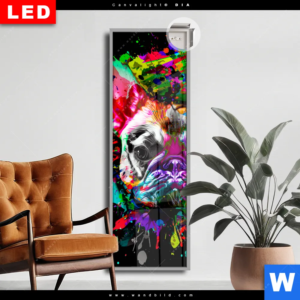 Canvalight® DIA Leuchtbild | Bunte Bulldogge Schwarz | Schmal