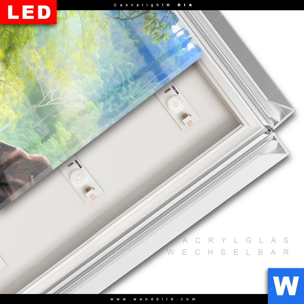 LED-Glasbild mit austauschbarem Acrylglas-Druck (Wechselbild)