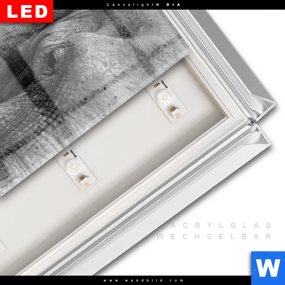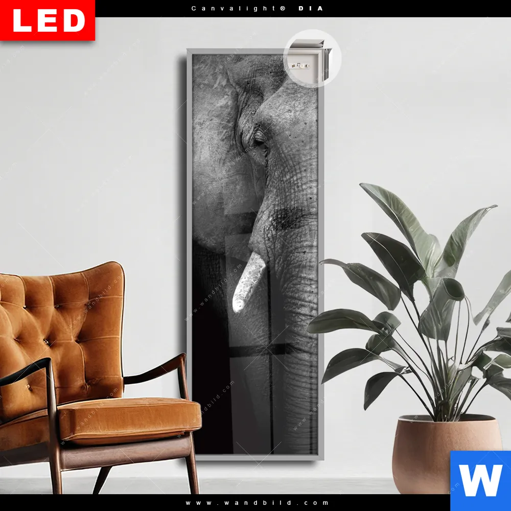 Canvalight® DIA Leuchtbild | Elefant Schwarzweiß | Schmal