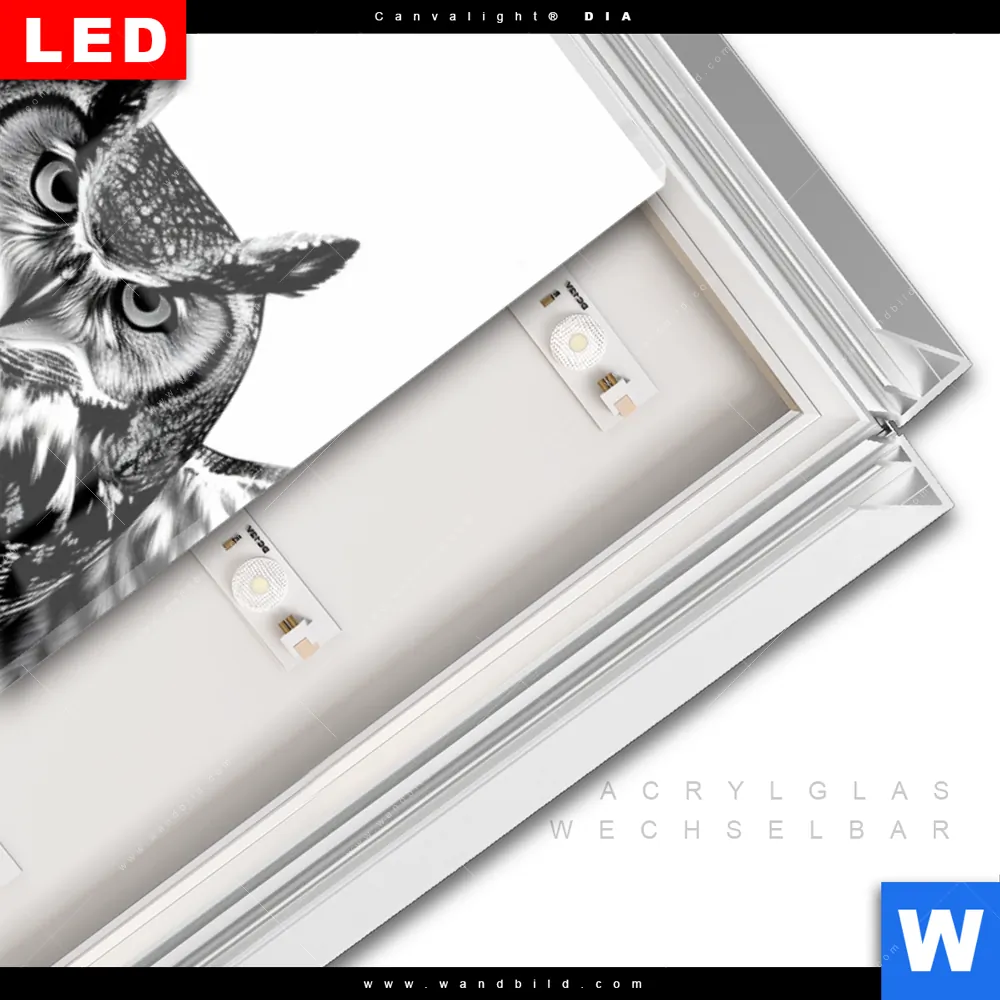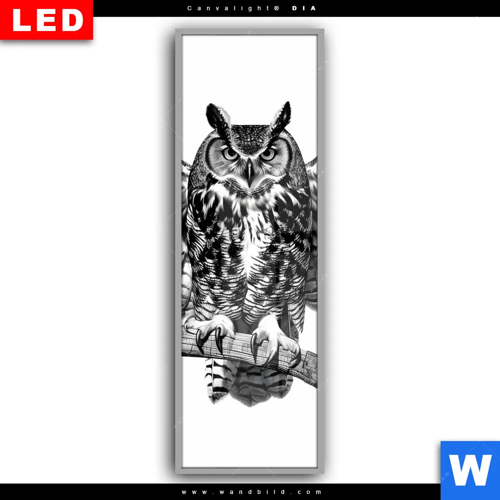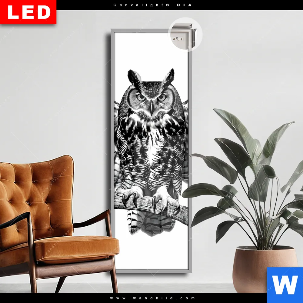 Canvalight® DIA Leuchtbild | Eule auf Ast | Schmal