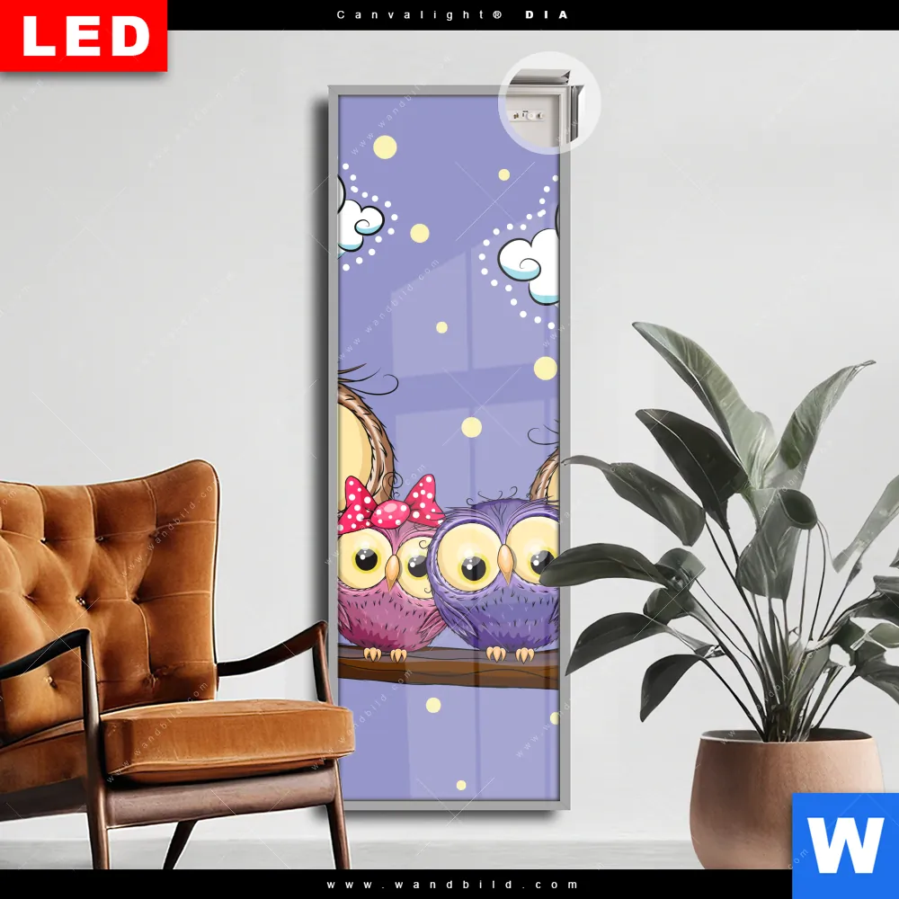 Canvalight® DIA Leuchtbild | Eulenfamilie | Schmal