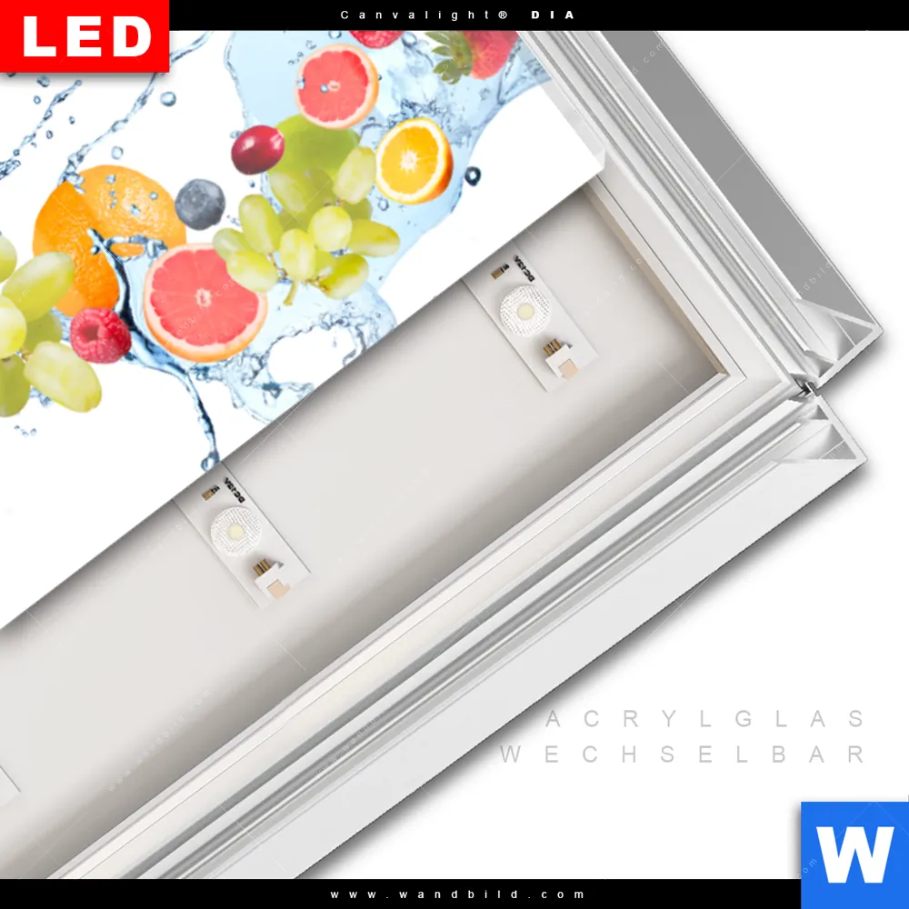 Canvalight® DIA Leuchtbild | Früchte in Spritzwasser | Schmal