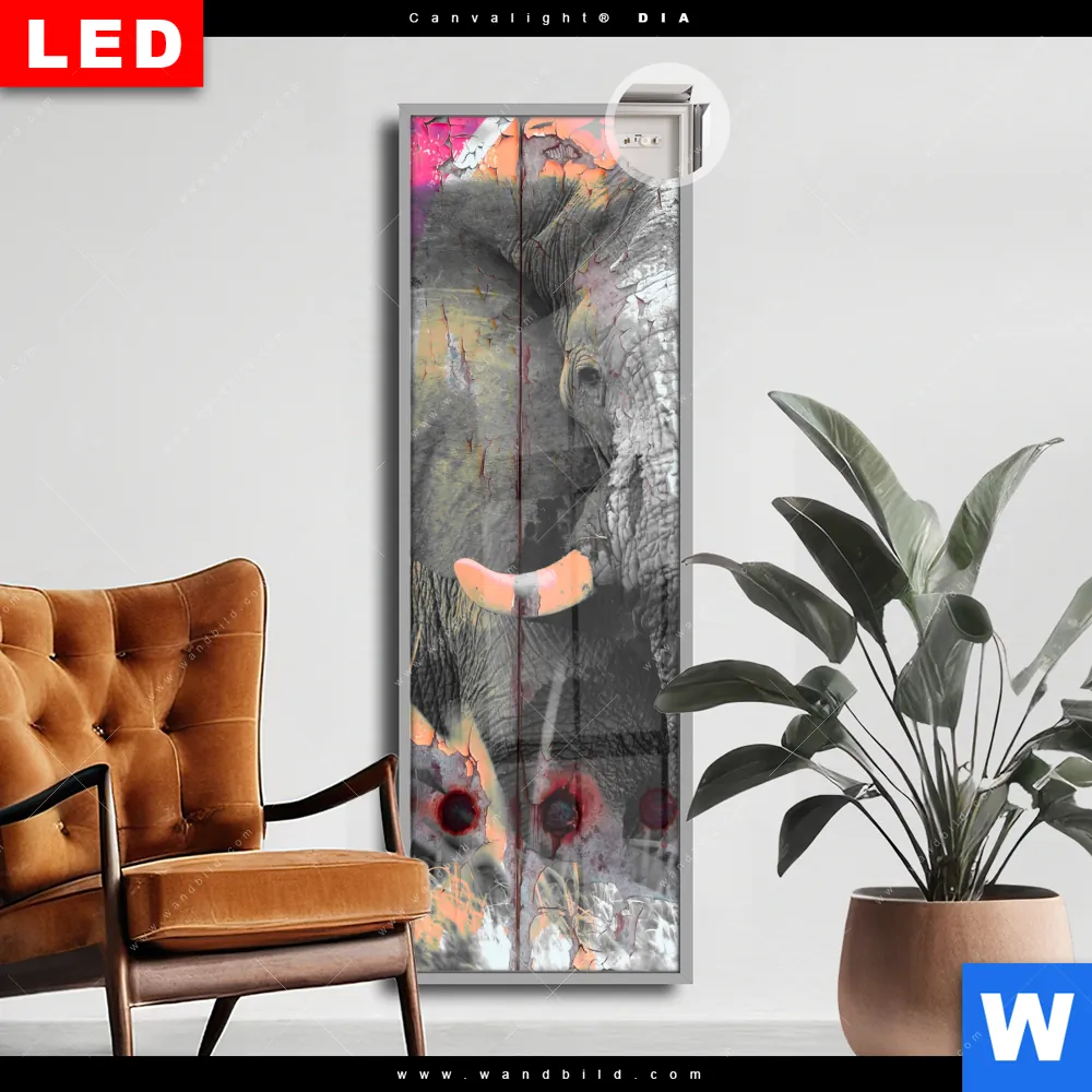 Canvalight® DIA Leuchtbild | Grunge Elefant | Schmal
