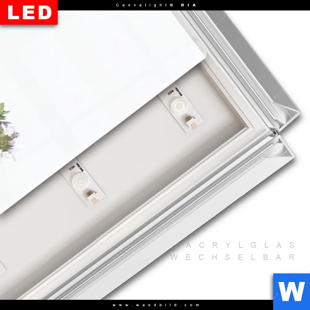 LED-Glasbild mit austauschbarem Acrylglas-Druck (Wechselbild)