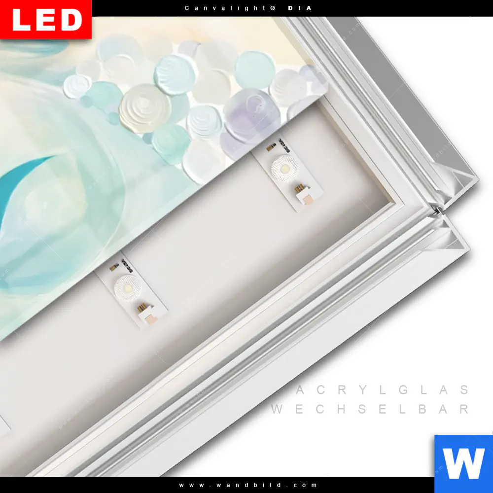 LED-Glasbild mit austauschbarem Acrylglas-Druck (Wechselbild)