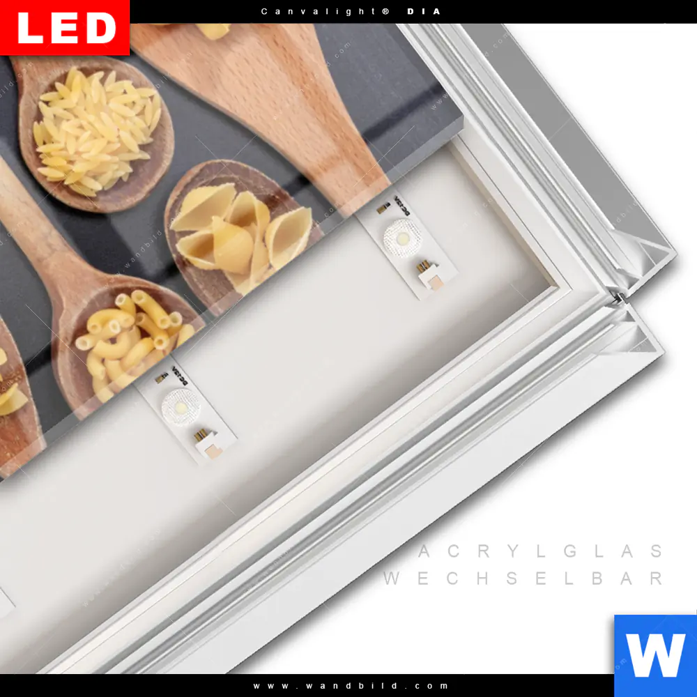 LED-Glasbild mit austauschbarem Acrylglas-Druck (Wechselbild)
