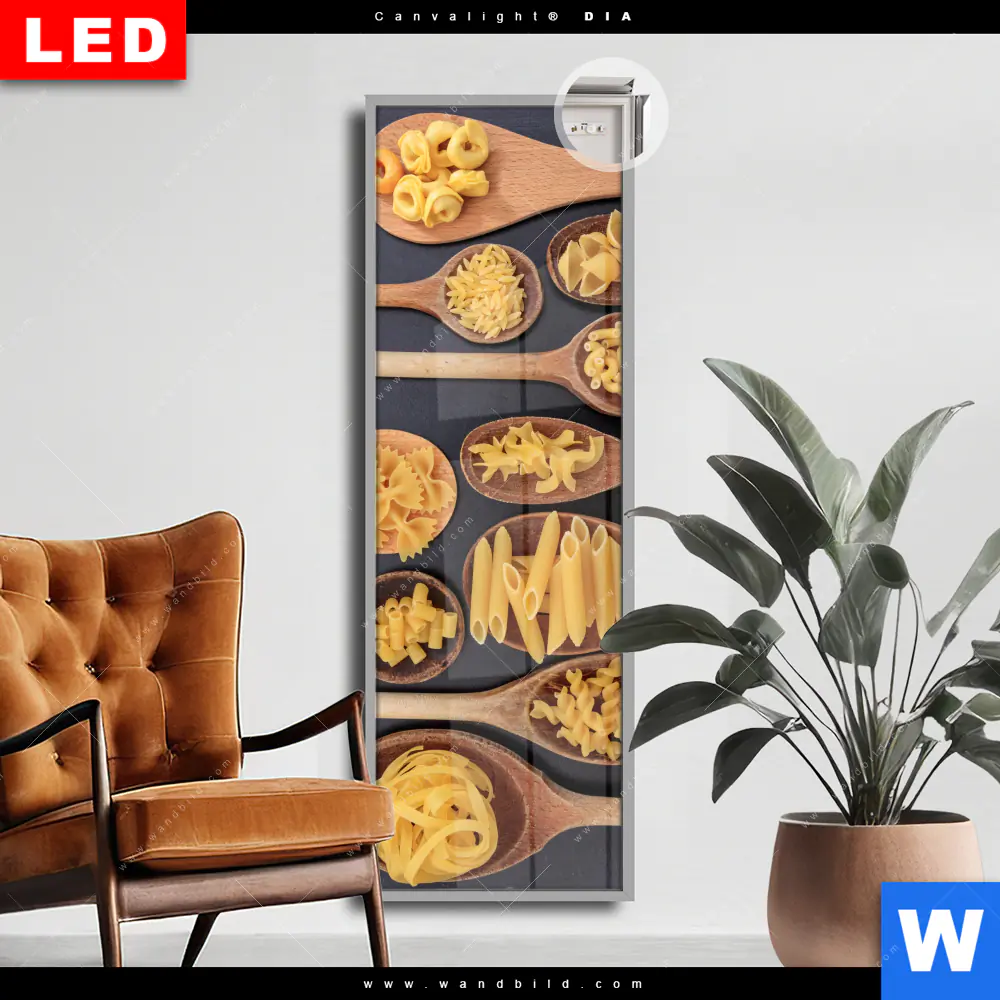 Canvalight® DIA Leuchtbild | Pasta auf Löffeln | Schmal