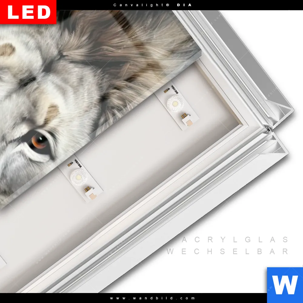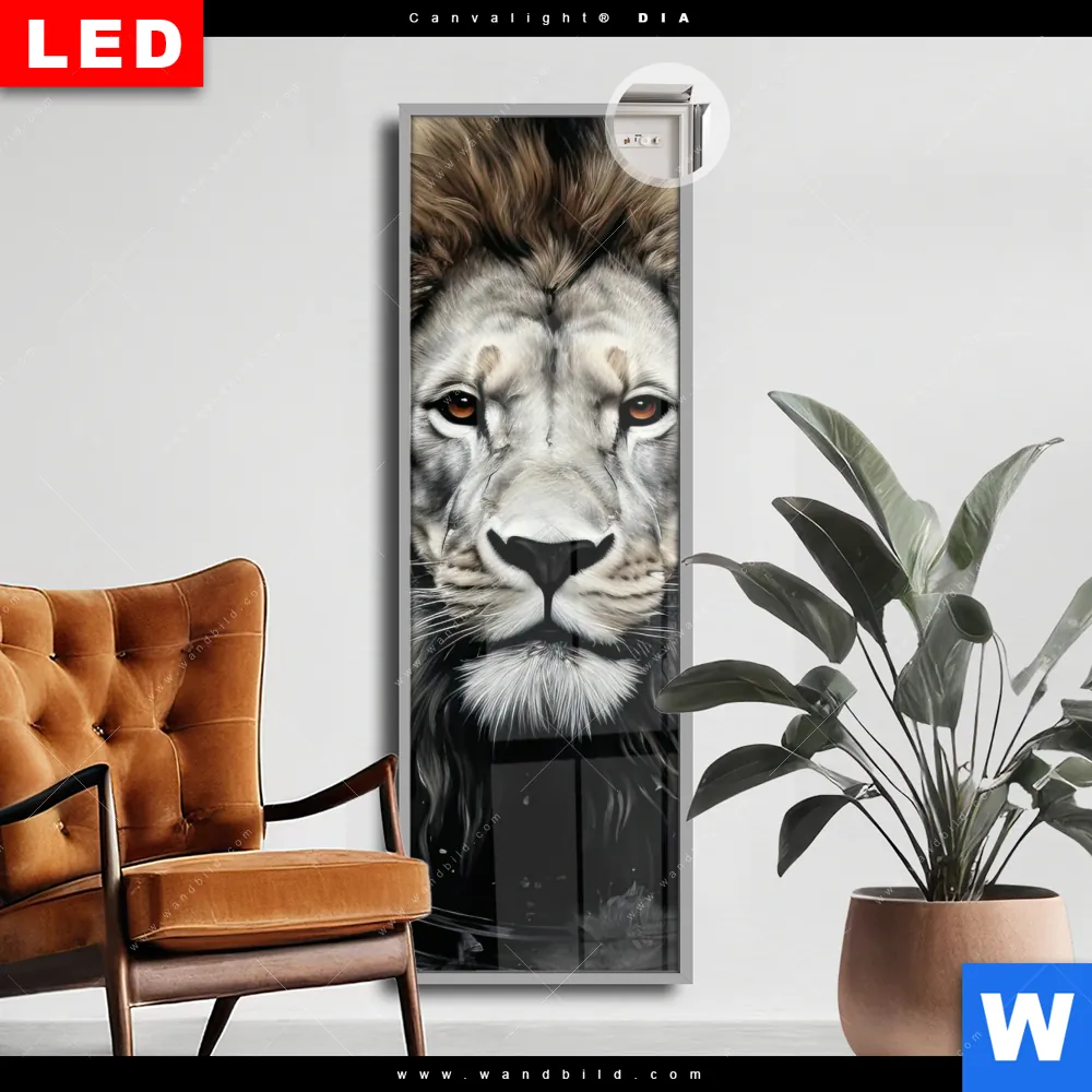 Canvalight® DIA Leuchtbild | Porträt eines Löwen | Schmal