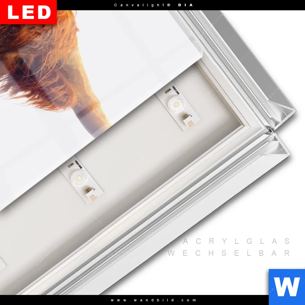 LED-Glasbild mit austauschbarem Acrylglas-Druck (Wechselbild)