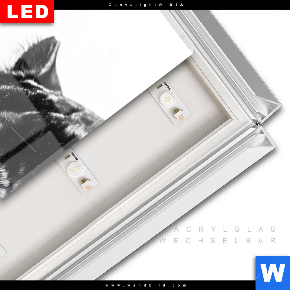 LED-Glasbild mit austauschbarem Acrylglas-Druck (Wechselbild)