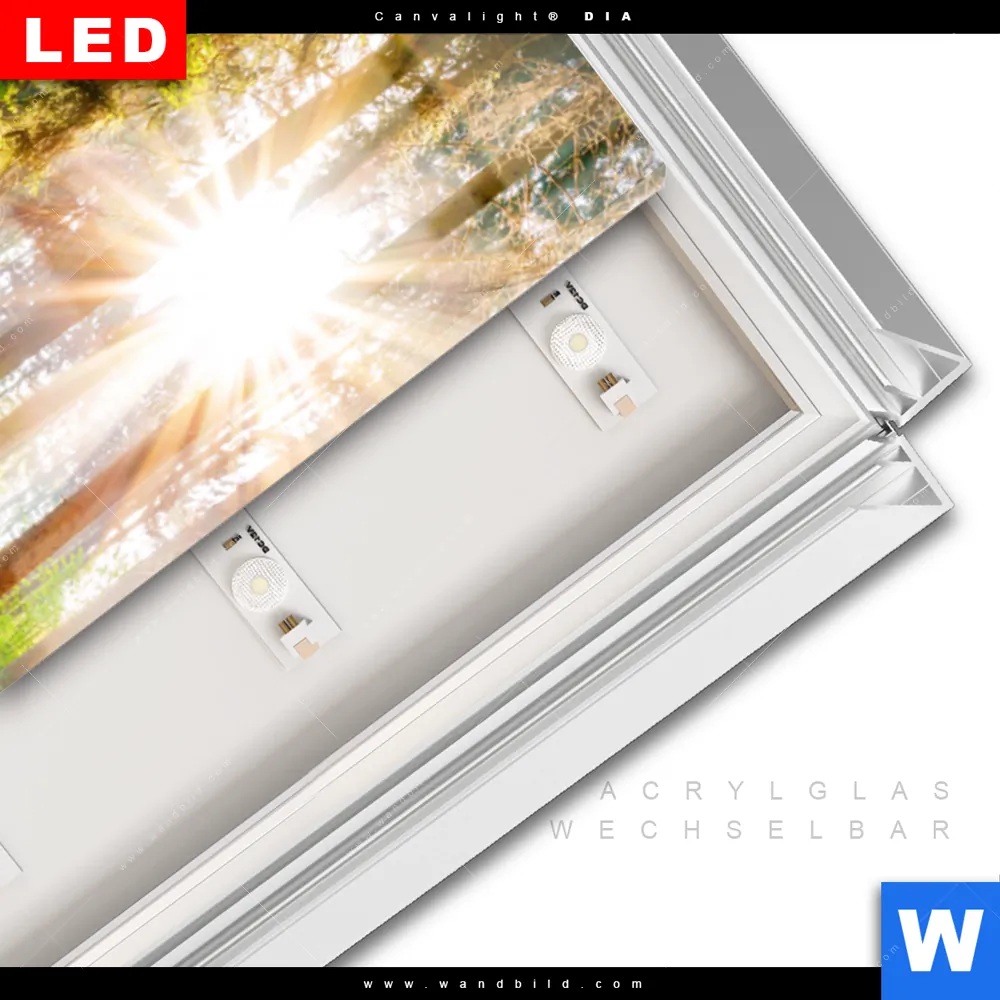 LED-Glasbild mit austauschbarem Acrylglas-Druck (Wechselbild)