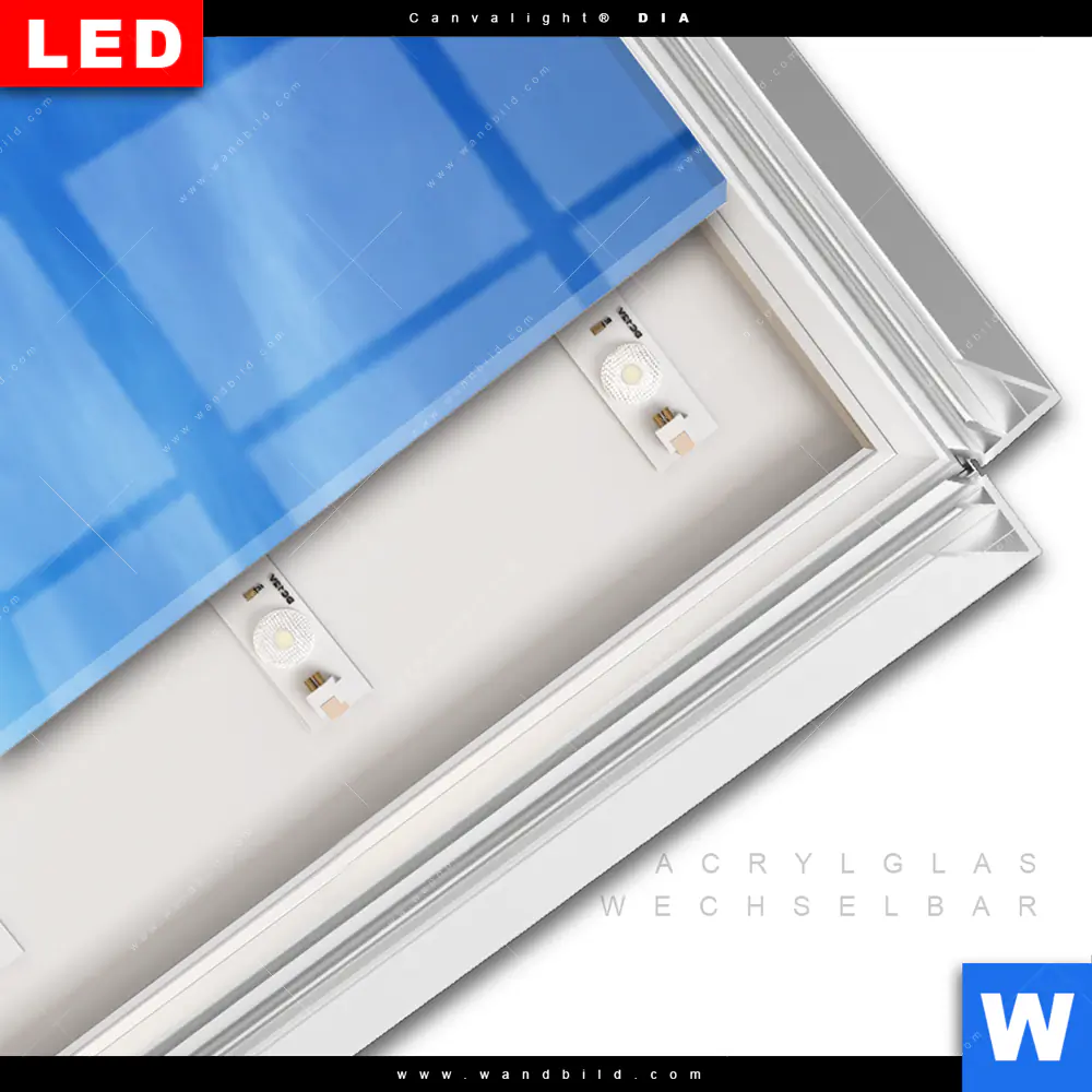 LED-Glasbild mit austauschbarem Acrylglas-Druck (Wechselbild)