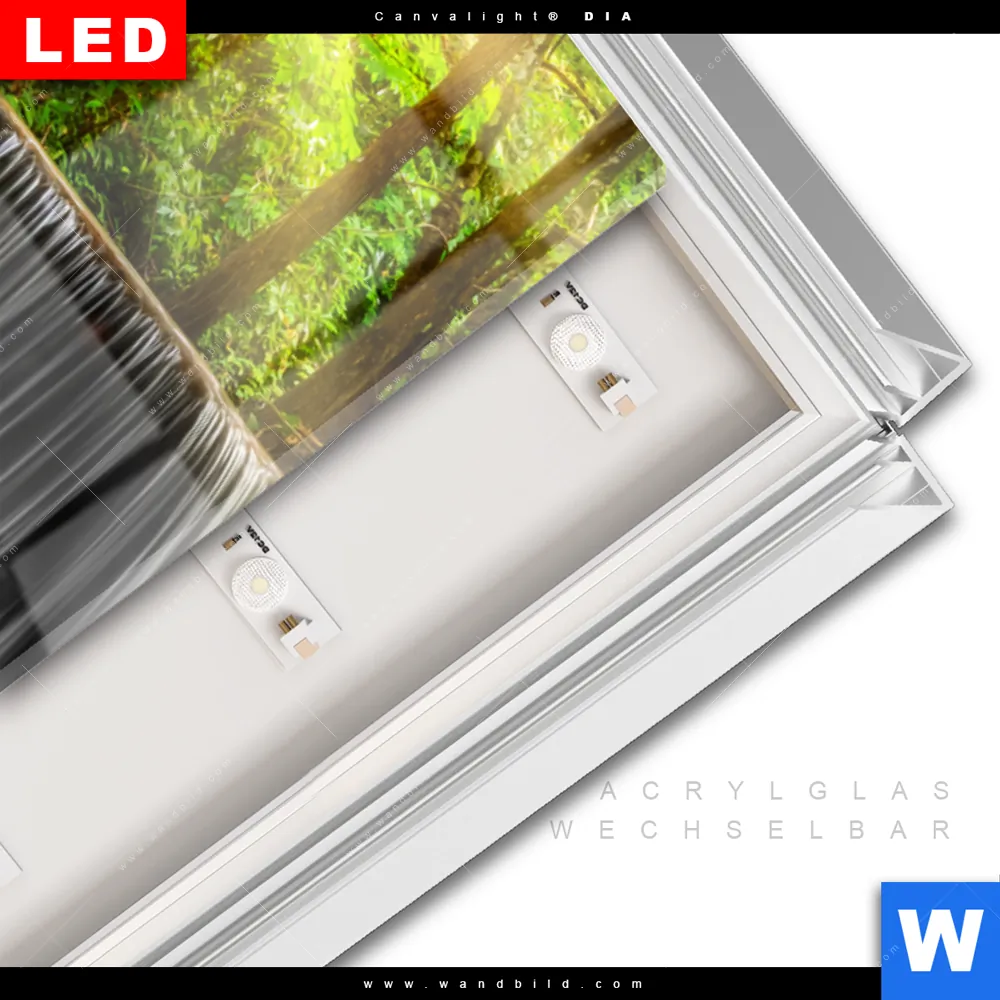 LED-Glasbild mit austauschbarem Acrylglas-Druck (Wechselbild)