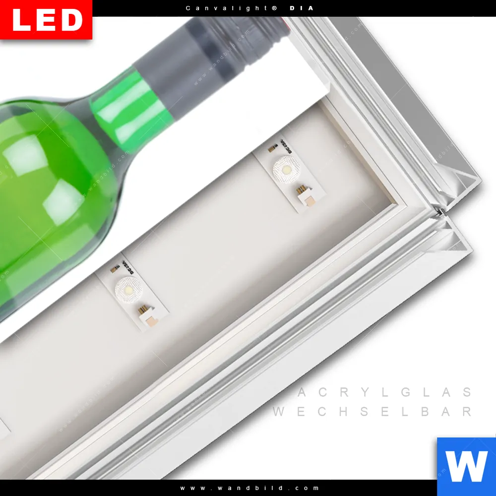 LED-Glasbild mit austauschbarem Acrylglas-Druck (Wechselbild)